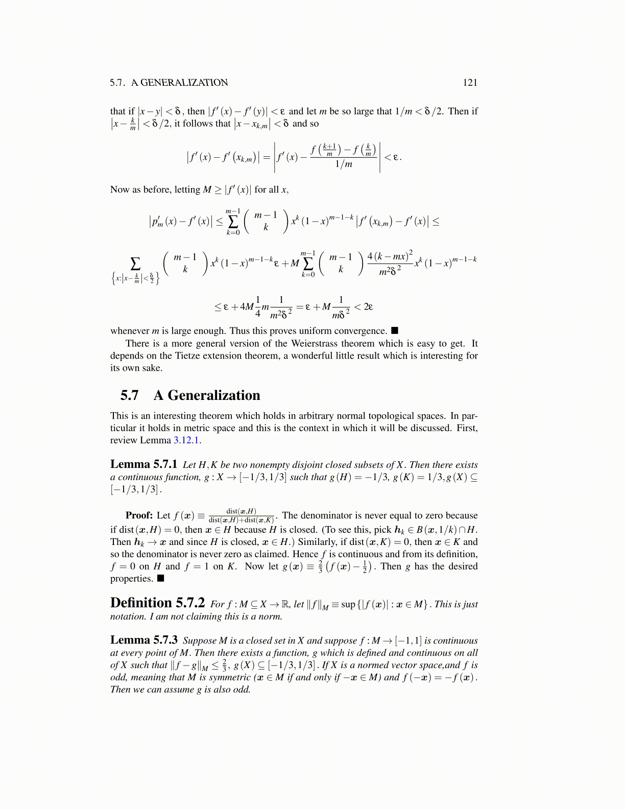 whenever m is large enough. Thus this proves uniform convergence. ■There is a more general version of the Weierstrass theorem which is easy to get. It