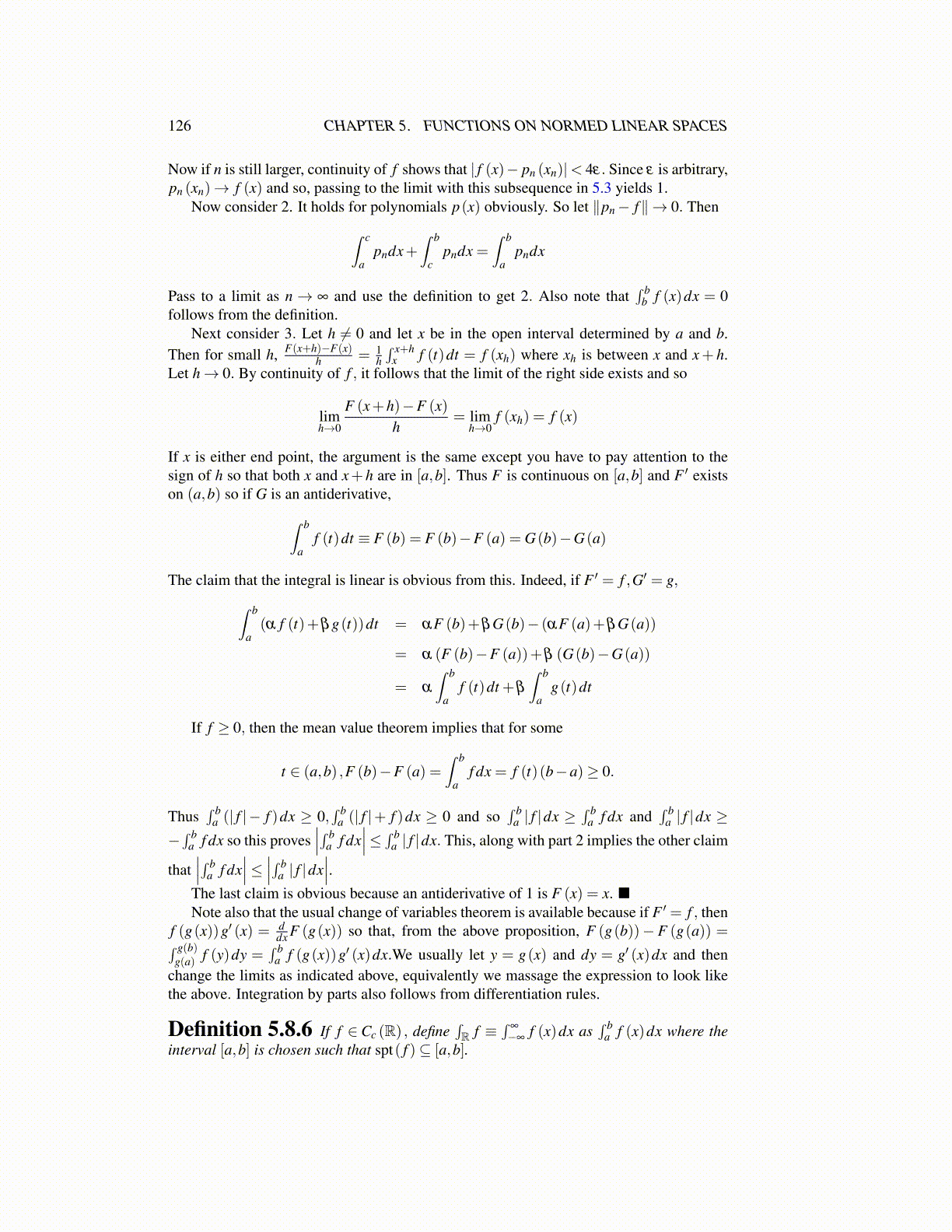 Definition 5.8.6 If f ∈ Cc (R) , define∫R f ≡