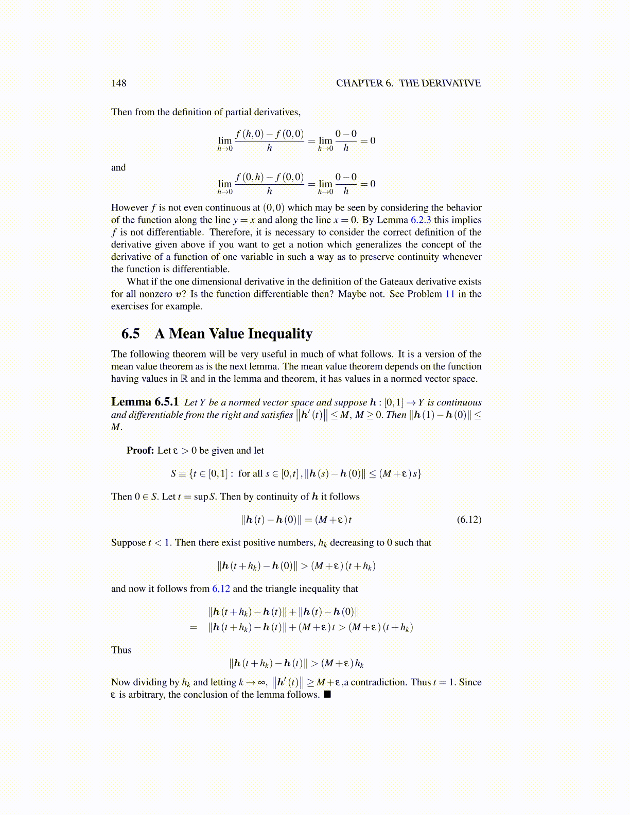 6.5 A Mean Value InequalityThe following theorem will be very useful in much of what follows. It is a version of themean value theorem as is the next lemma. The mean value theorem depends on the functionhaving values in R and in the lemma and theorem, it has values in a normed vector space.