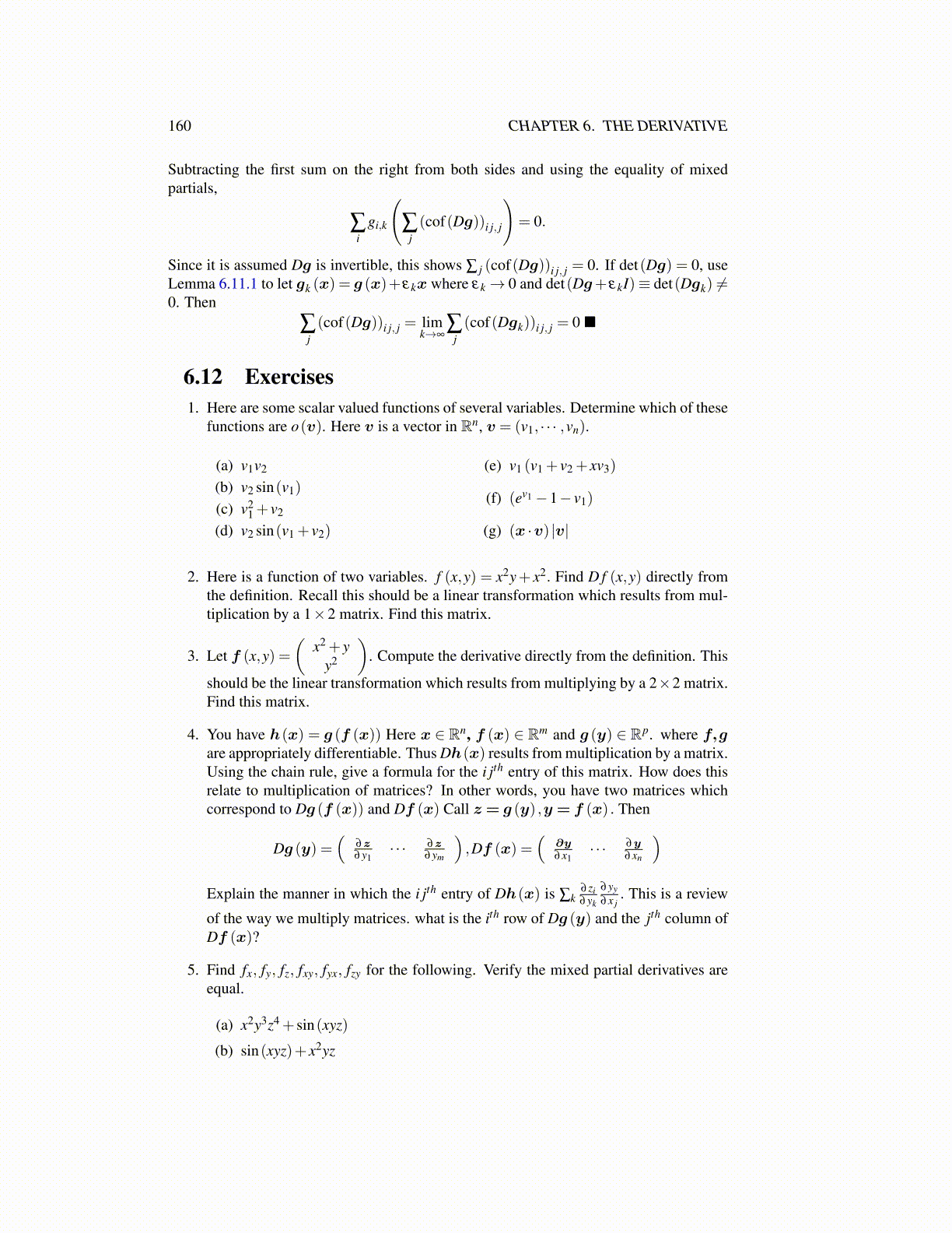 Since it is assumed Dg is invertible, this shows ∑ j (cof(Dg))i j, j = 0. If det(Dg) = 0, useLemma 6.11.1 to let gk (x) = g (x)+εkx where εk→ 0 and det(Dg+ εkI)≡ det(Dgk) ̸=0. Then