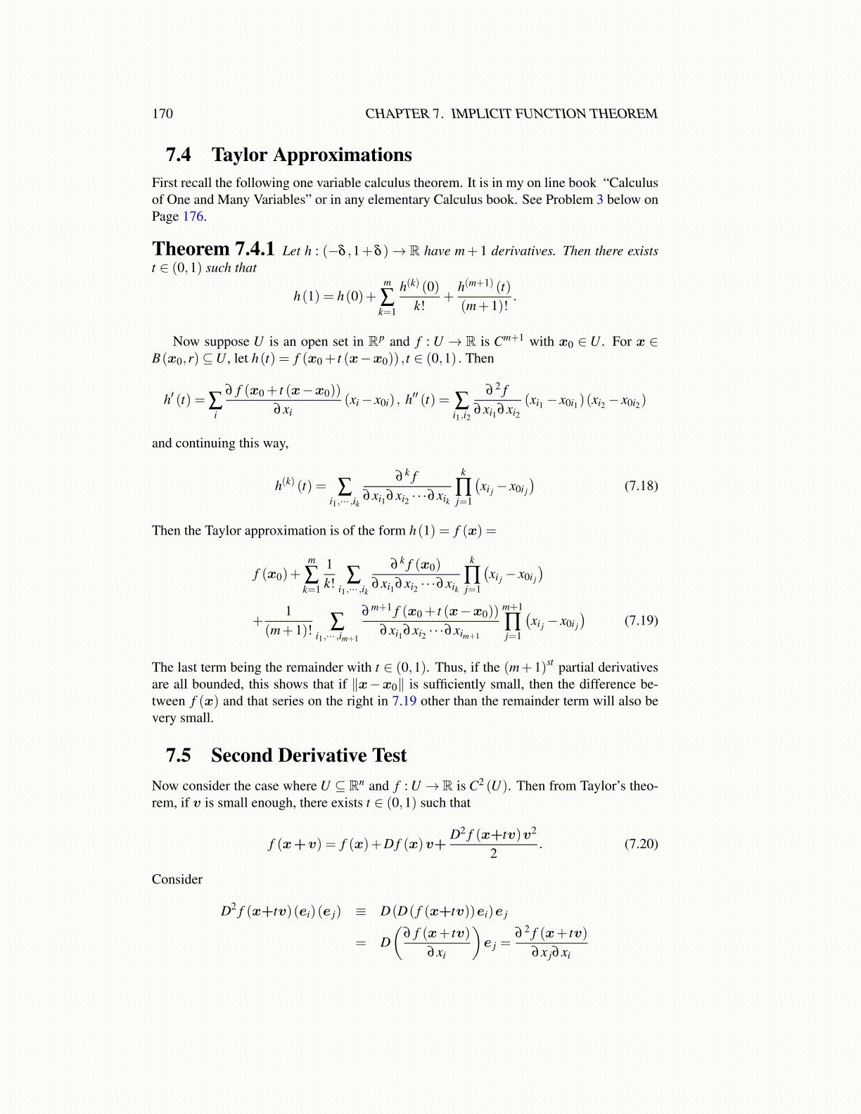 The last term being the remainder with t ∈ (0,1). Thus, if the (m+1)st partial derivativesare all bounded, this shows that if ∥x−x0∥ is sufficiently small, then the difference be-tween f (x) and that series on the right in 7.19 other than the remainder term will also bevery small.