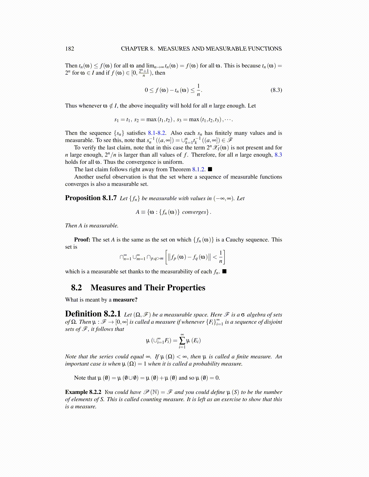 182 CHAPTER 8. MEASURES AND MEASURABLE FUNCTIONS