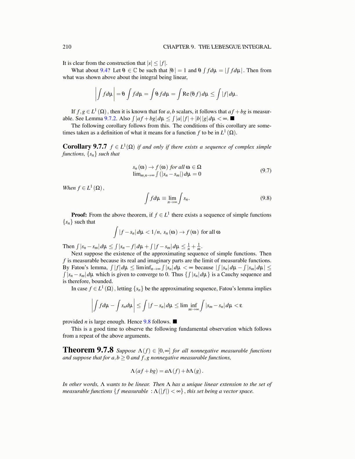 210 CHAPTER 9. THE LEBESGUE INTEGRAL