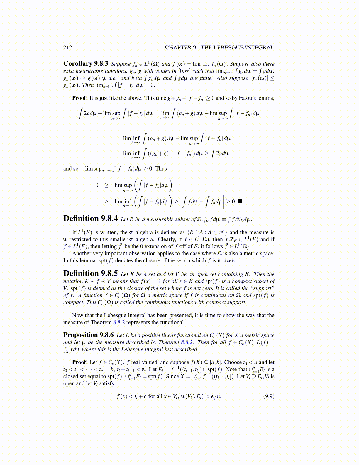 212 CHAPTER 9. THE LEBESGUE INTEGRAL