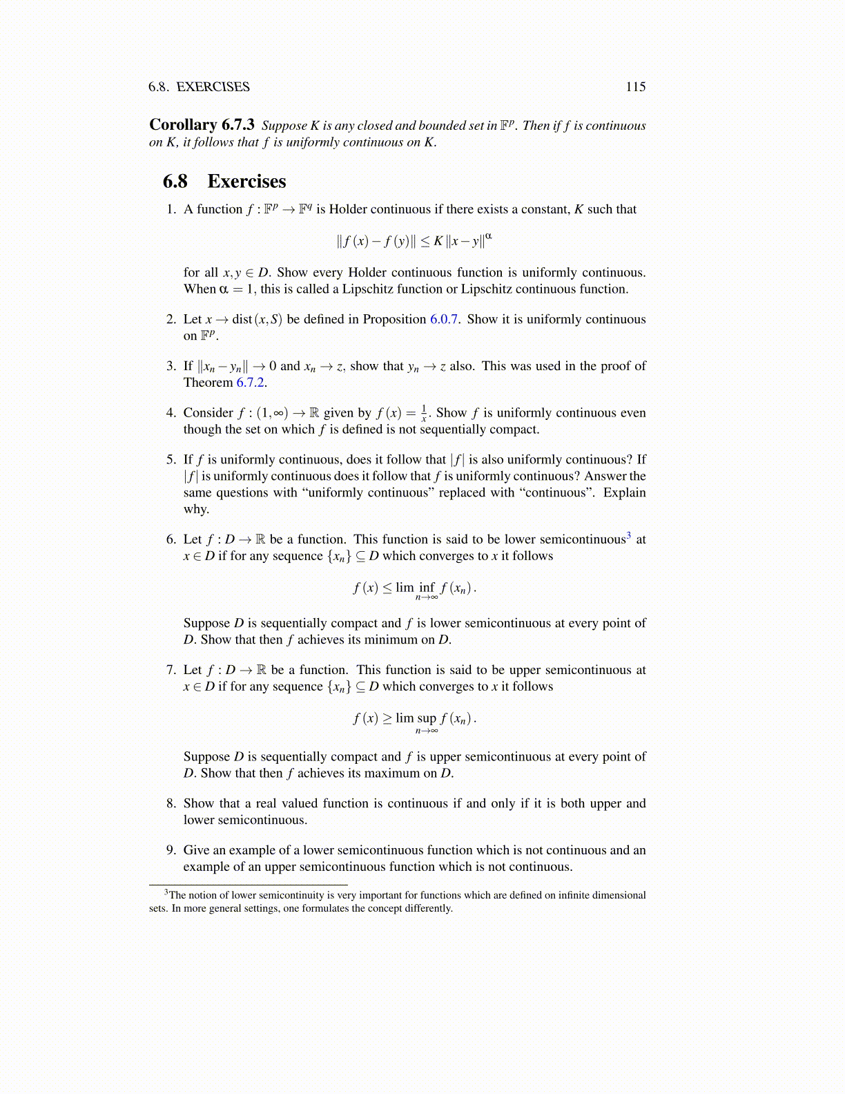 Theorem 6.9.7 Let { fn} be a sequence of functions defined on D which are contin-uous at z and suppose this sequence converges uniformly to f . Then f is also continuous atz. If each fn is uniformly continuous on D, then f is also uniformly continuous on D.
