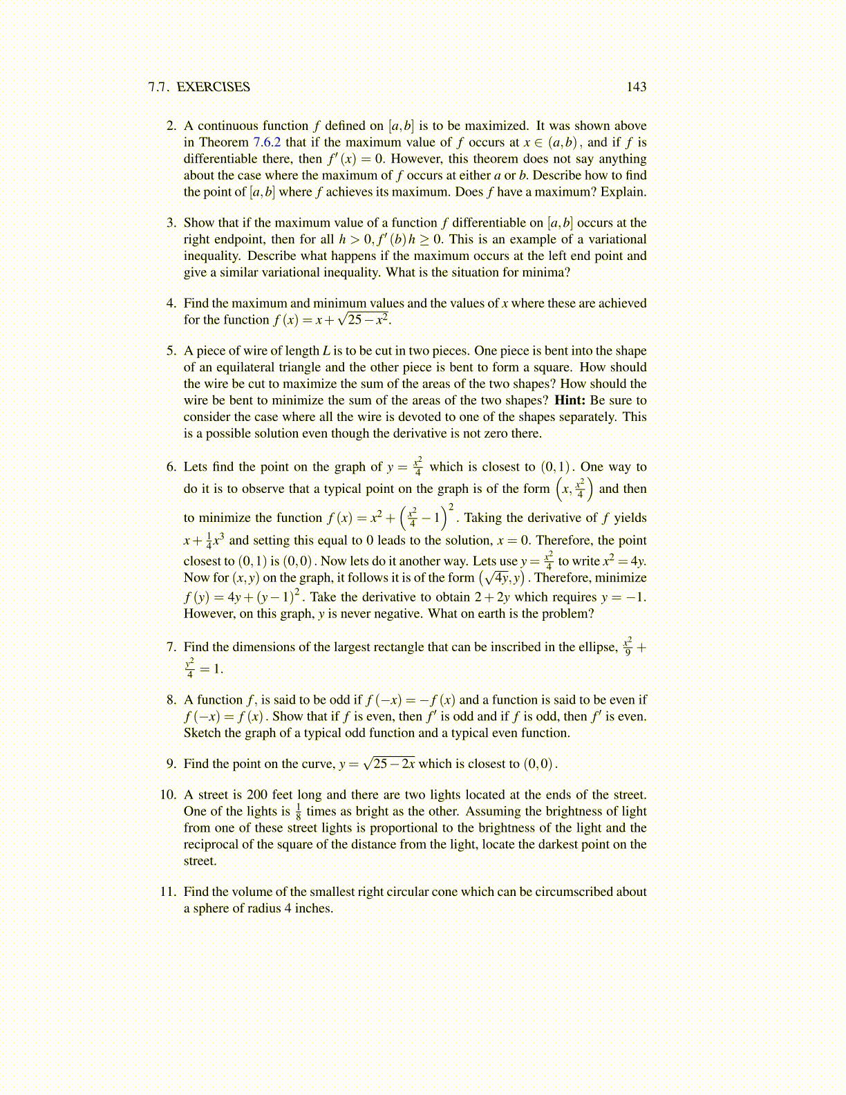 7.8 Mean Value TheoremThe mean value theorem is possibly the most important theorem about the derivative of afunction of one variable. It pertains only to a real valued function of a real variable. Thebest versions of many other theorems depend on this fundamental result. The mean valuetheorem is based on the following special case known as Rolle’s theorem2. It is an existence