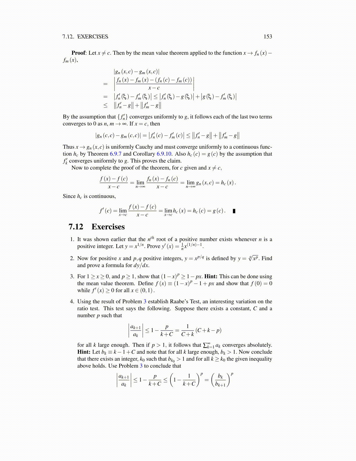 13. For f continuous on [a,b] , using the Weierstrass theorem, let ∥pn− f∥ → 0 wherepn is a polynomial and ∥g∥ ≡ max{|g(x)| : x ∈ [a,b]} . Then define