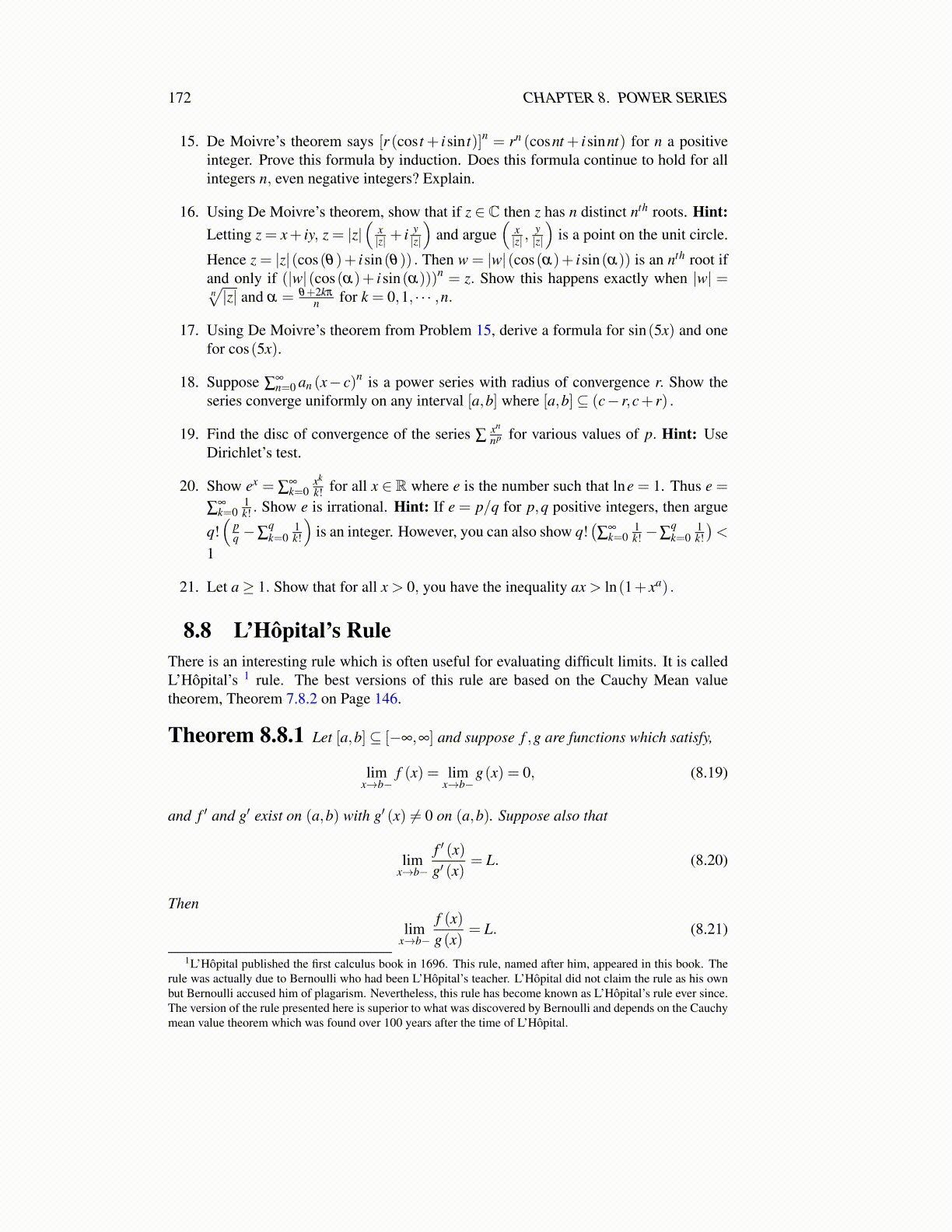 Warning 8.8.5 Be sure to check the assumptions of L’Hôpital’s rule beforeusing it.