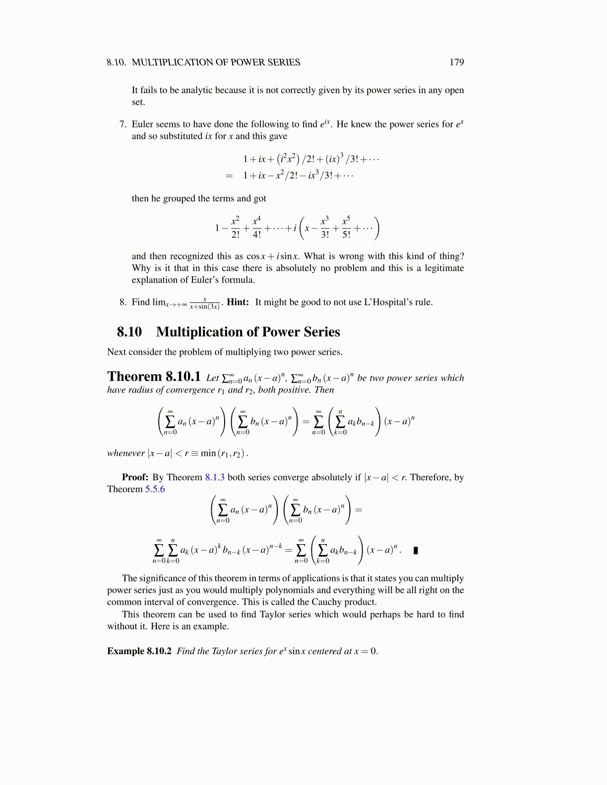 issues here about whether tanx even has a power series, but if it does, the above must beit. In fact, tan(x) will have a power series valid on some interval centered at 0 and thisbecomes completely obvious when one uses methods from complex analysis but it isn’t tooobvious at this point. If you are interested in this issue, read the last section of the chapter.Note also that what has been accomplished is to divide the power series for sinx by thepower series for cosx just like they were polynomials.