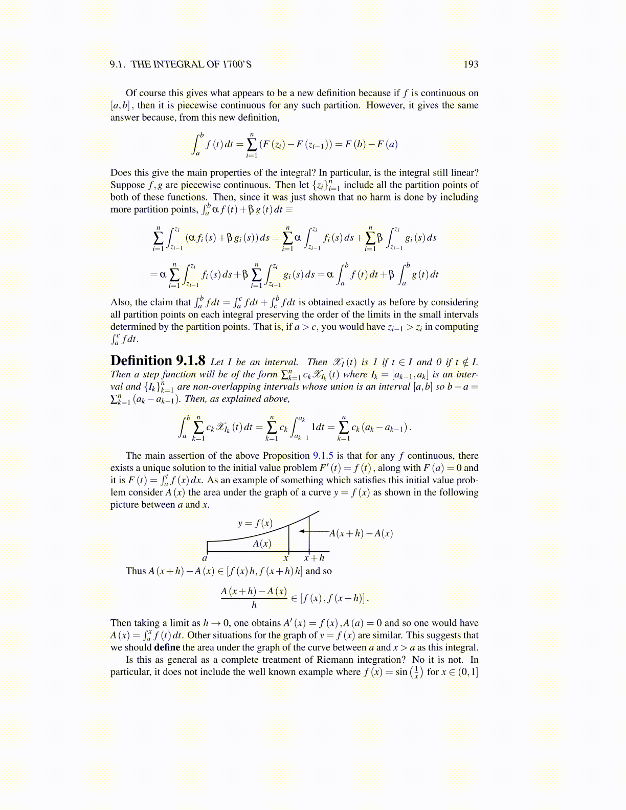 Definition 9.3.4 The Riemann integral is a special case of the above in which theintegrator function is g(x) = x. We write
