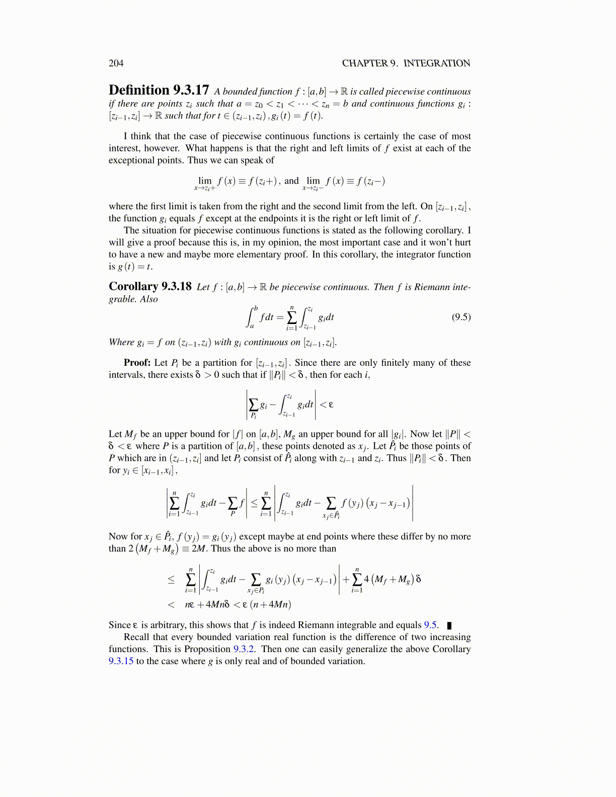 Corollary 9.4.2 ∫ ba f dg exists if f is continuous and g of bounded variation or if g is