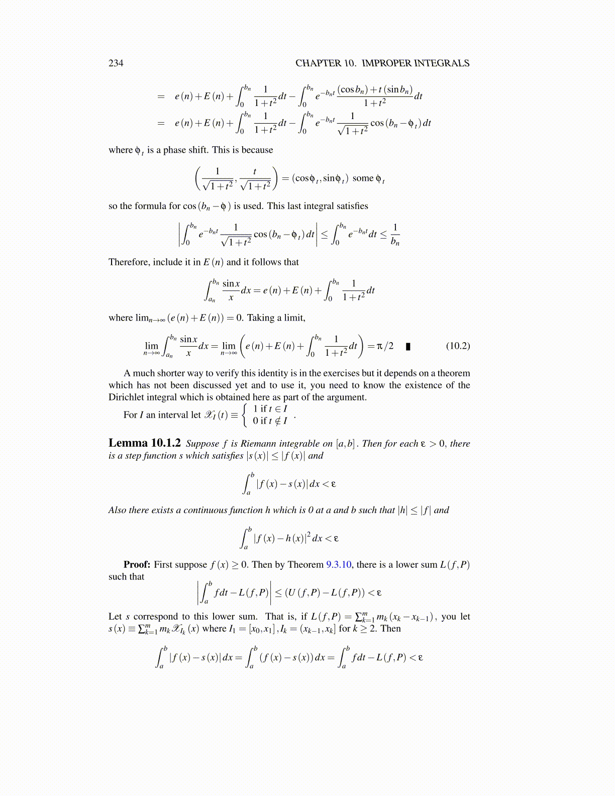 234 CHAPTER 10. IMPROPER INTEGRALS