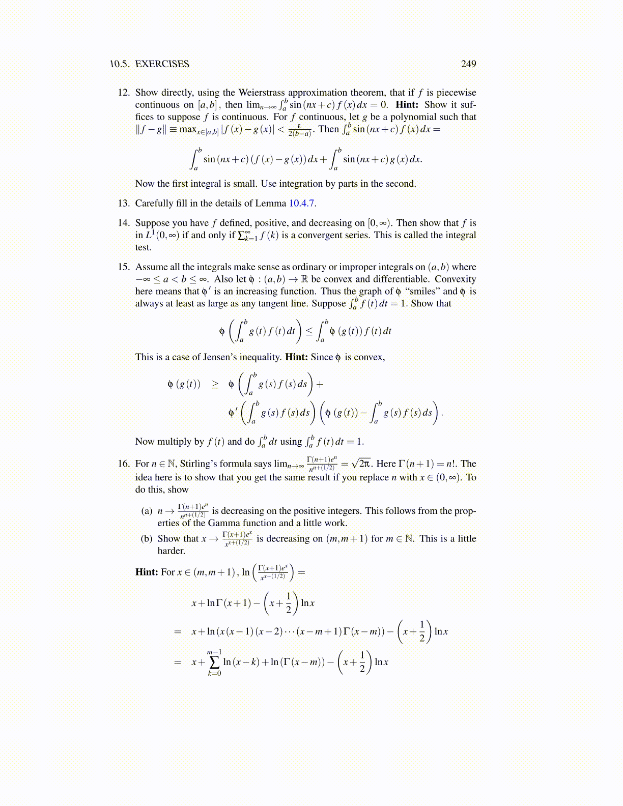 Functions of One Complex VariableIn the nineteenth century, complex analysis developed along with real analysis, the latterbeing the main topic of this book in which one considers functions of one real variable.However, many difficult real improper integrals can be best considered using contour in-tegrals so some introduction to this very important topic is useful. It is not intended to bea full course on complex analysis, just an introduction to some of the main ideas. Cauchywas the principal originator of the study of complex analysis in the early 1800’s. His-torically, the main theorems came from the Cauchy Riemann equations and a version ofGreen’s theorem. The Cauchy Riemann equations are considered later in a problem, butGreen’s theorem is part of multivariable calculus which is not being discussed in this book.However, using the ideas of Goursat (1858-1936) it is possible to present the main theoryin terms of functions of a single variable, this time a single complex variable.