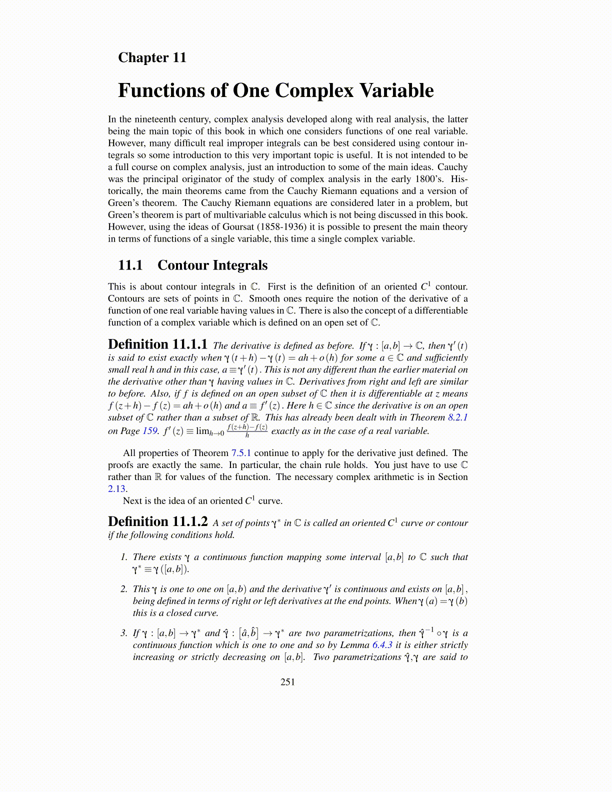 Definition 11.1.5 Let γ∗ be an oriented C1 curve having a C1 parametrization γ :[a,b]→ γ∗, then