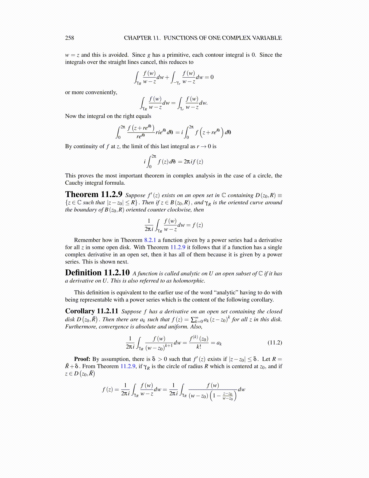 258 CHAPTER 11. FUNCTIONS OF ONE COMPLEX VARIABLE