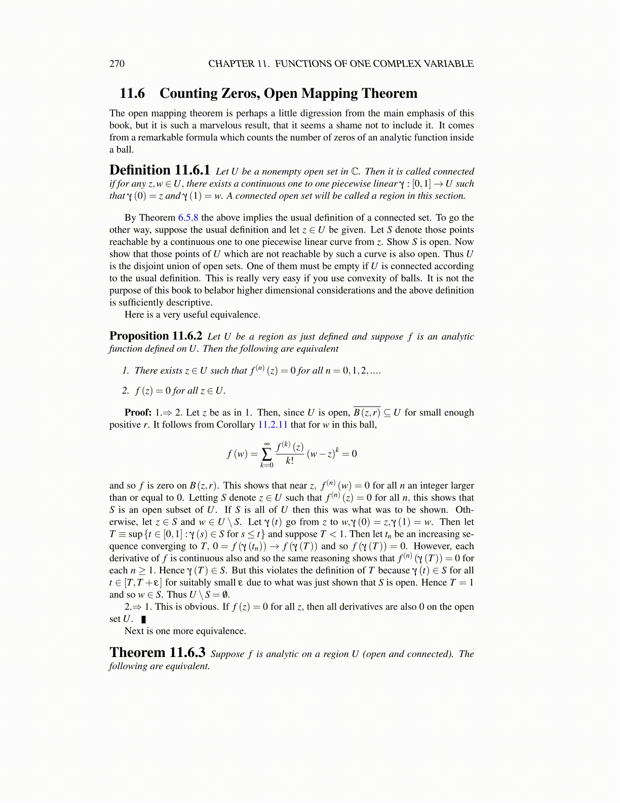 Theorem 11.6.6 (Open mapping theorem) Let Ω be a region (open connected set)in C and suppose f : Ω→ C is analytic. Then f (Ω) is either a point or a region. In thecase where f (Ω) is a region, it follows that for each z0 ∈ Ω, there exists an open set Vcontaining z0 and m ∈ N such that for all z ∈V,