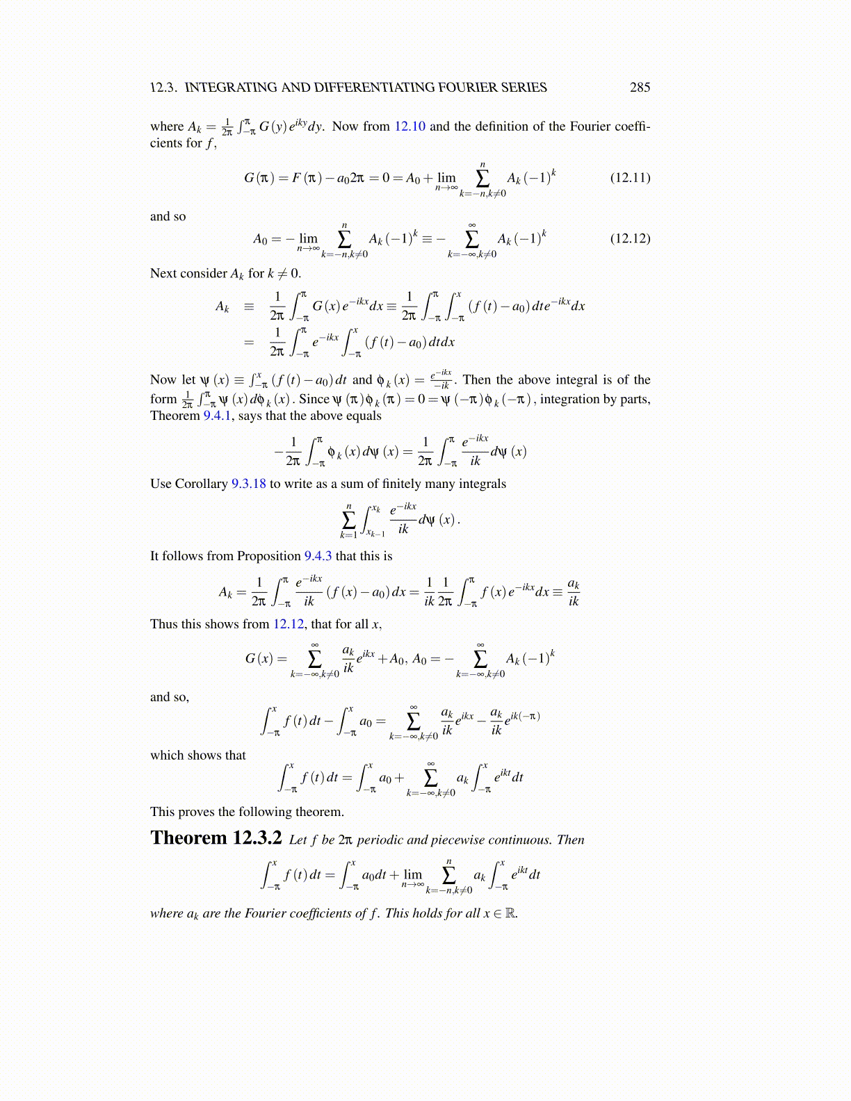 Definition 12.5.1 Recall the nth partial sum of the Fourier series Sn f (x) is givenby