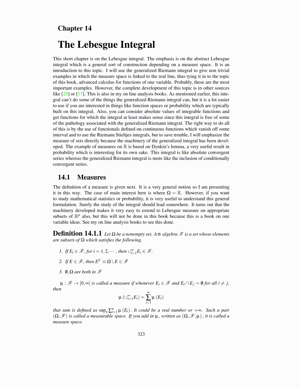 this being the ordinary Riemann Stieltjes integral.Letting E ≡ ∪∞