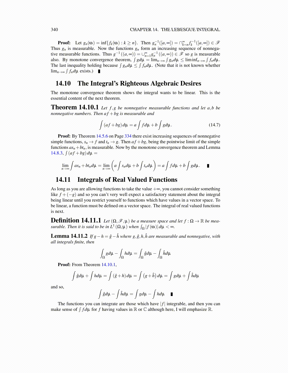 340 CHAPTER 14. THE LEBESGUE INTEGRAL