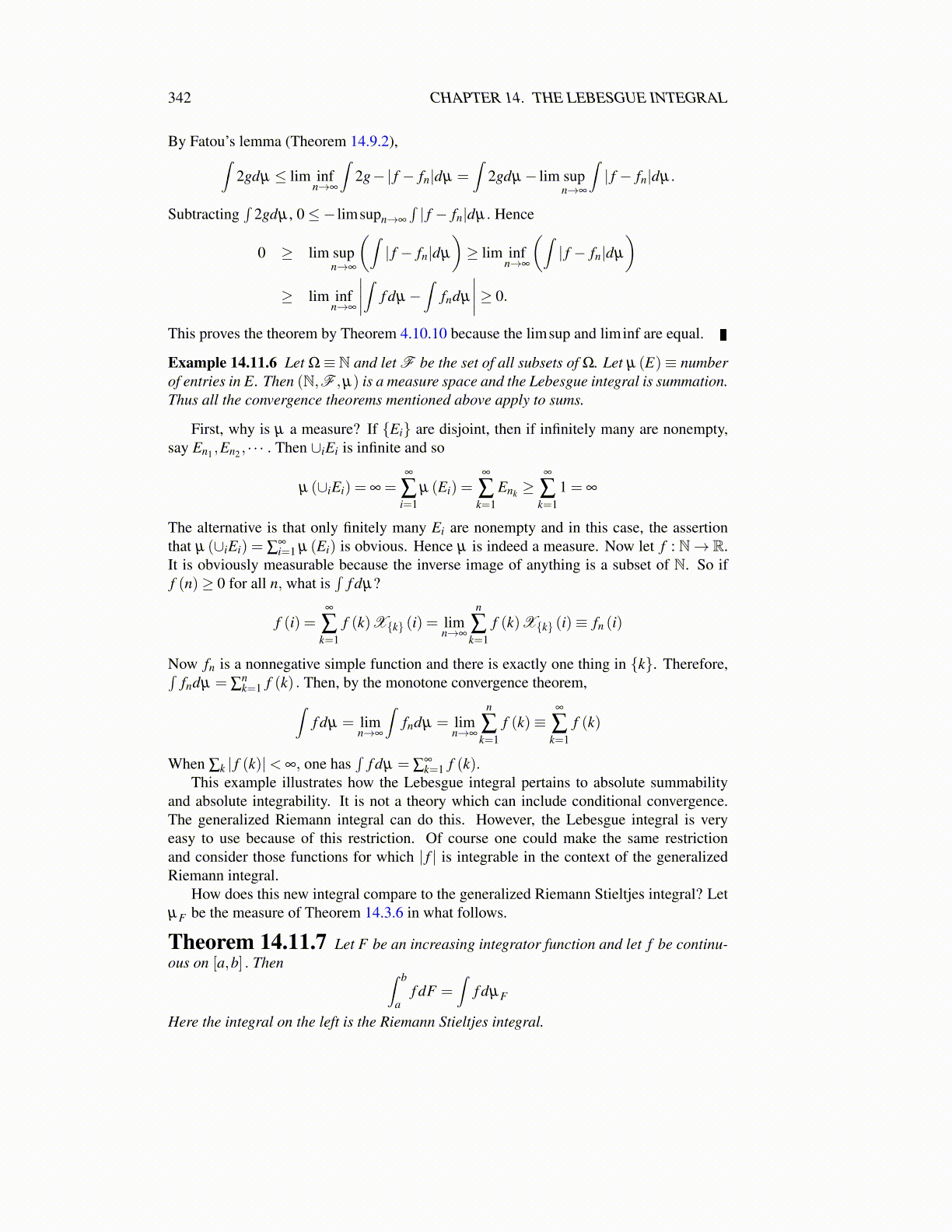 342 CHAPTER 14. THE LEBESGUE INTEGRAL