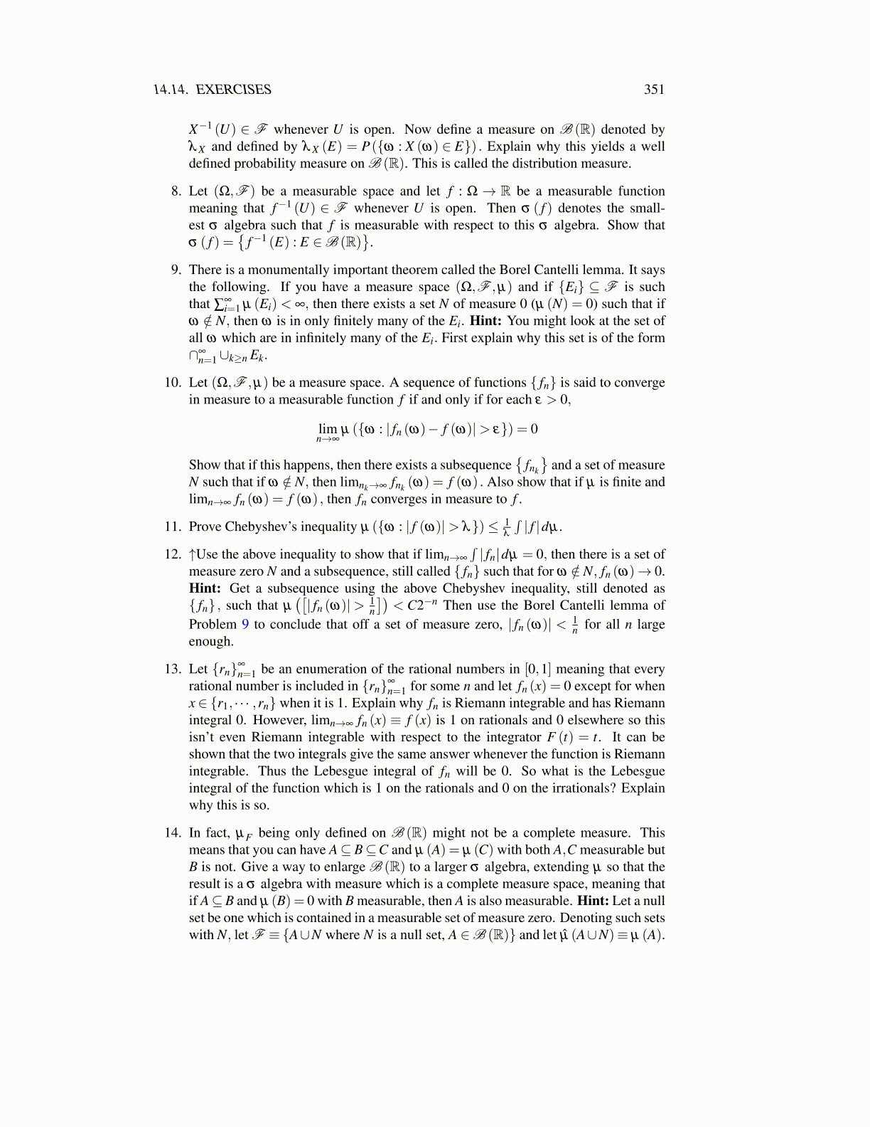 measurable.) Show there exist Lebesgue measurable sets which are not Borel mea-surable. Hint: The function, φ is Lebesgue measurable. Now recall that Borel ◦measurable = measurable.