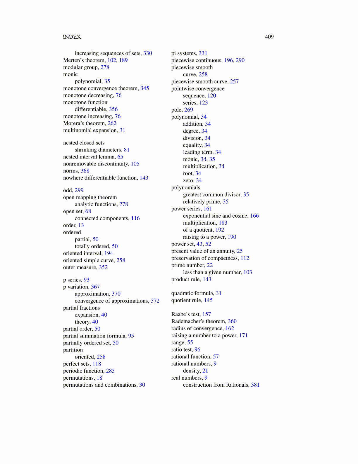 product, 183Cauchy condensation test, 92Cauchy criterion for sums, 89Cauchy Goursat theorem, 264