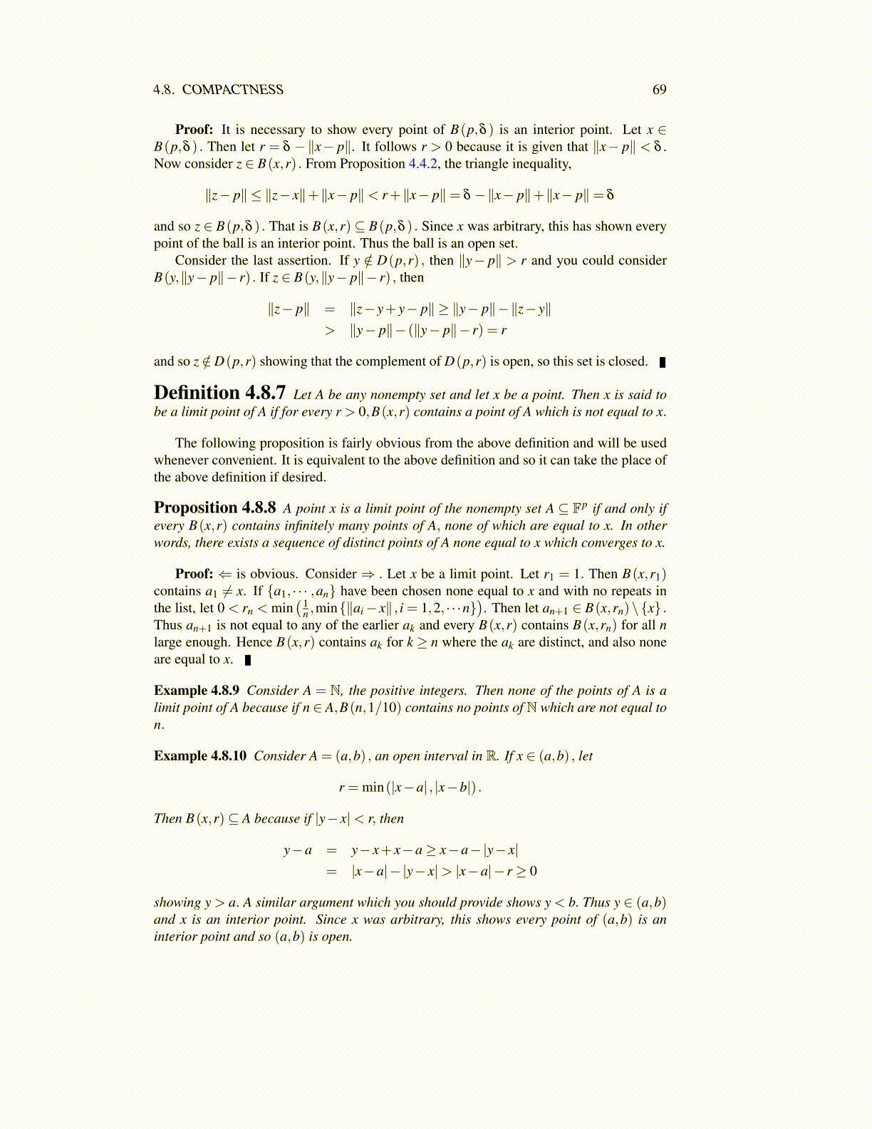 4.8.3 Compactness and Open CoveringsIn Theorem 4.8.13 it was shown that sequential compactness in Fp is the same as closedand bounded. Here we give the traditional definition of compactness and show that this isalso equivalent to closed and bounded.