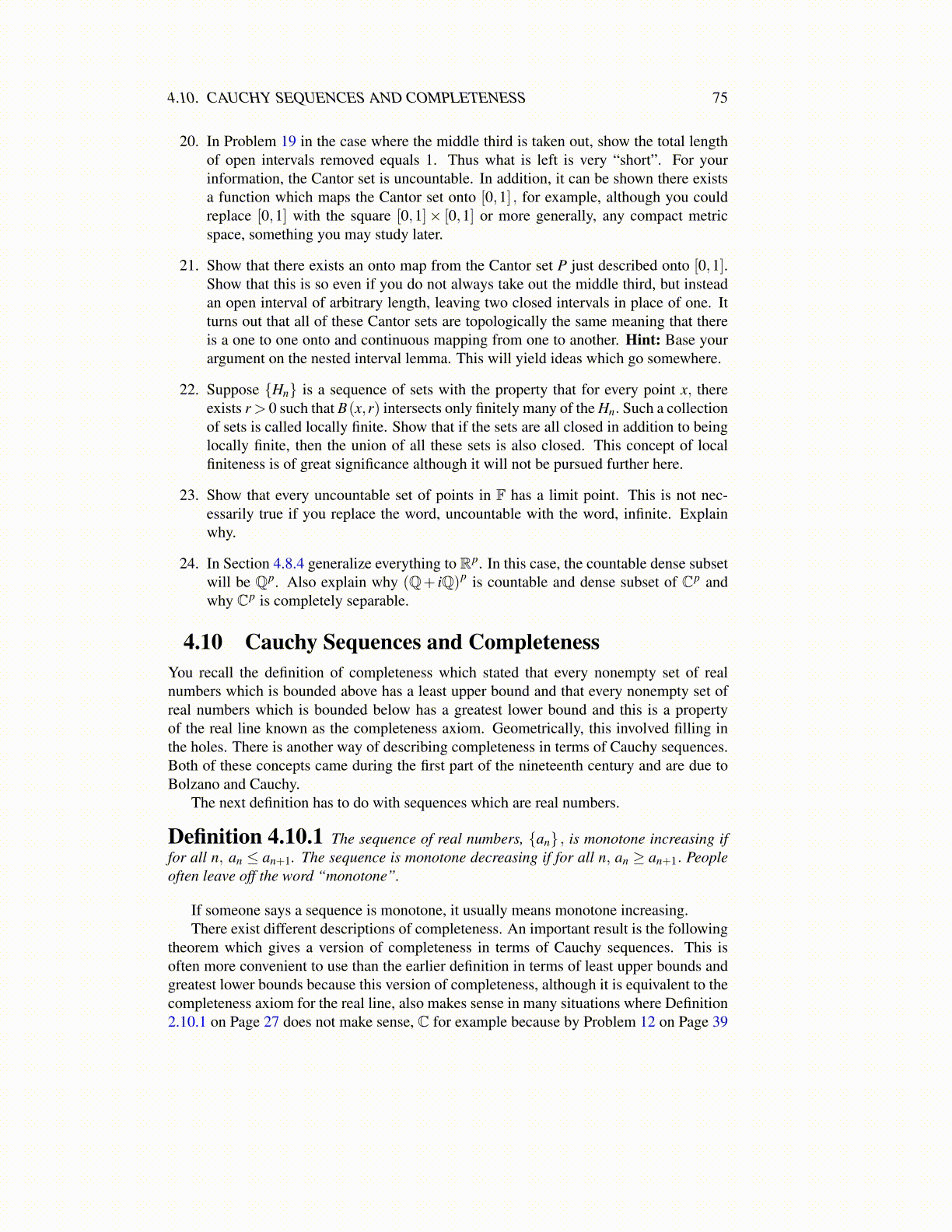 4.10. CAUCHY SEQUENCES AND COMPLETENESS 75