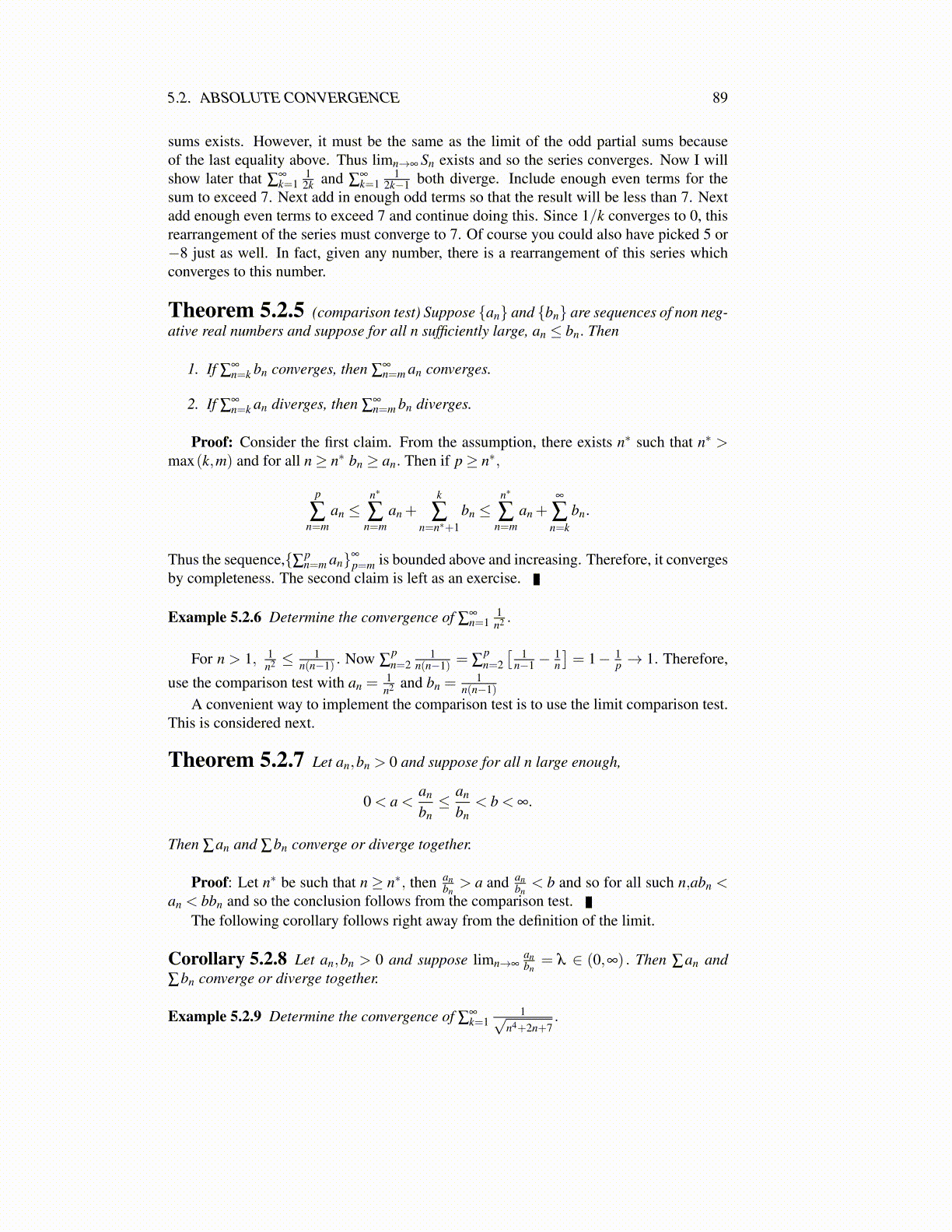 Example 5.2.12 Determine the convergence of ∑∞k=1