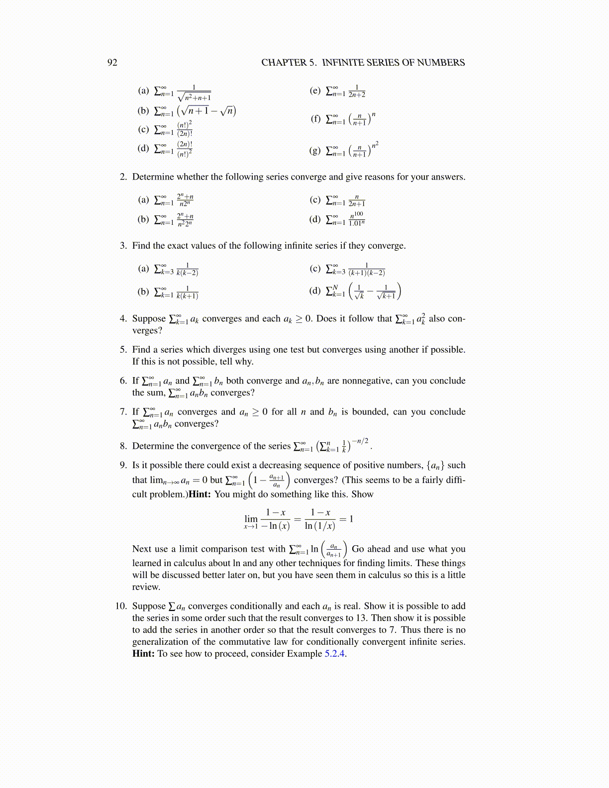 92 CHAPTER 5. INFINITE SERIES OF NUMBERS