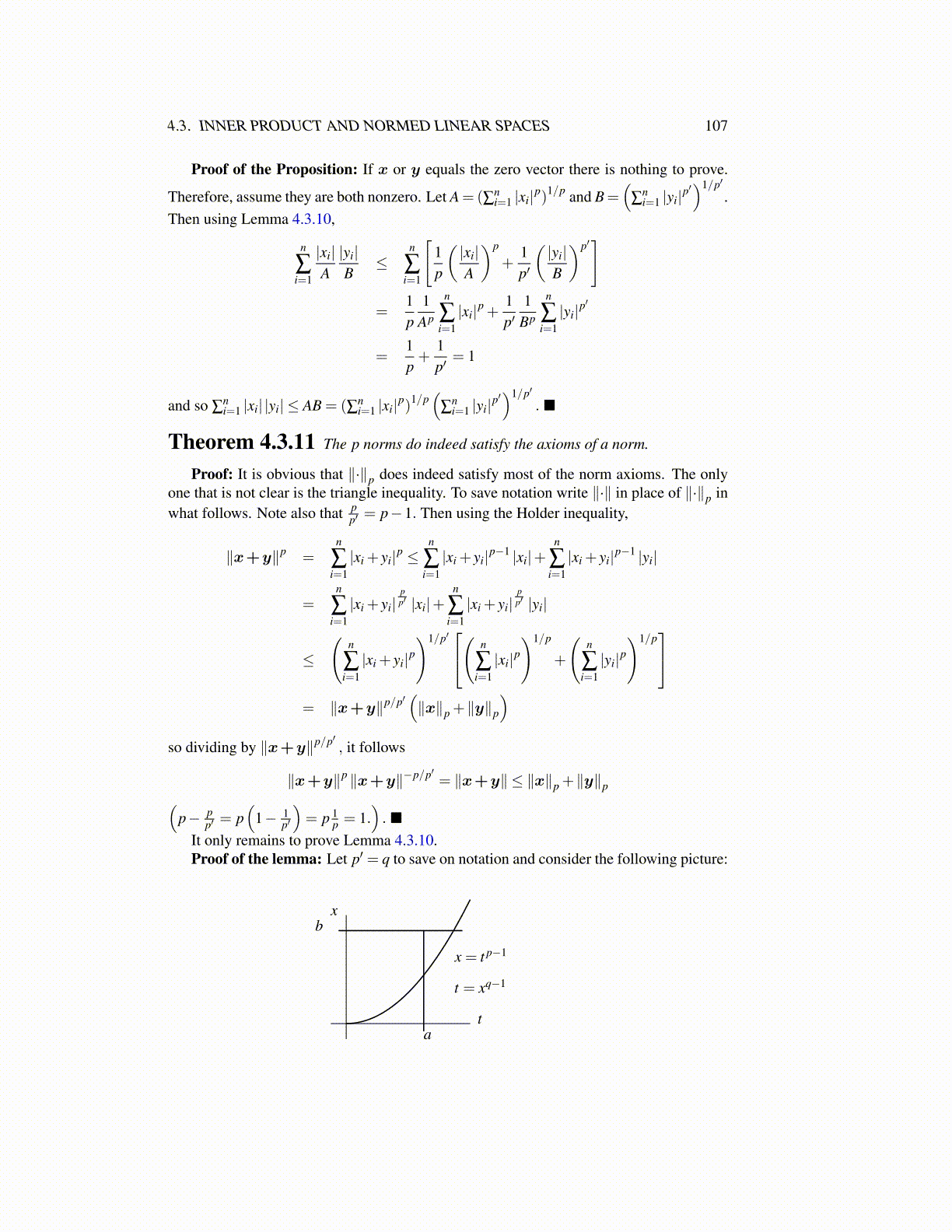 4.3. INNER PRODUCT AND NORMED LINEAR SPACES 107