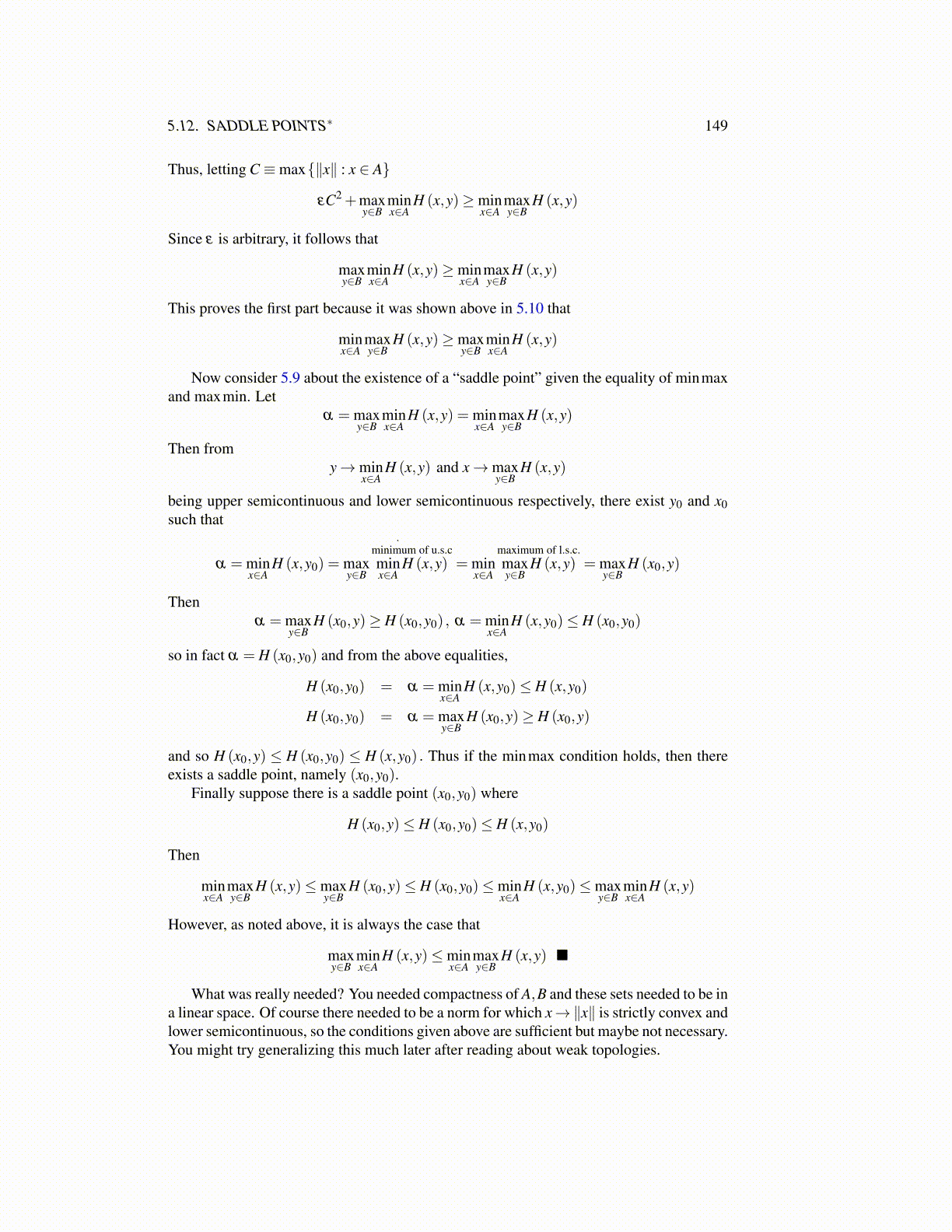 Now consider 5.9 about the existence of a “saddle point” given the equality of minmaxand maxmin. Let