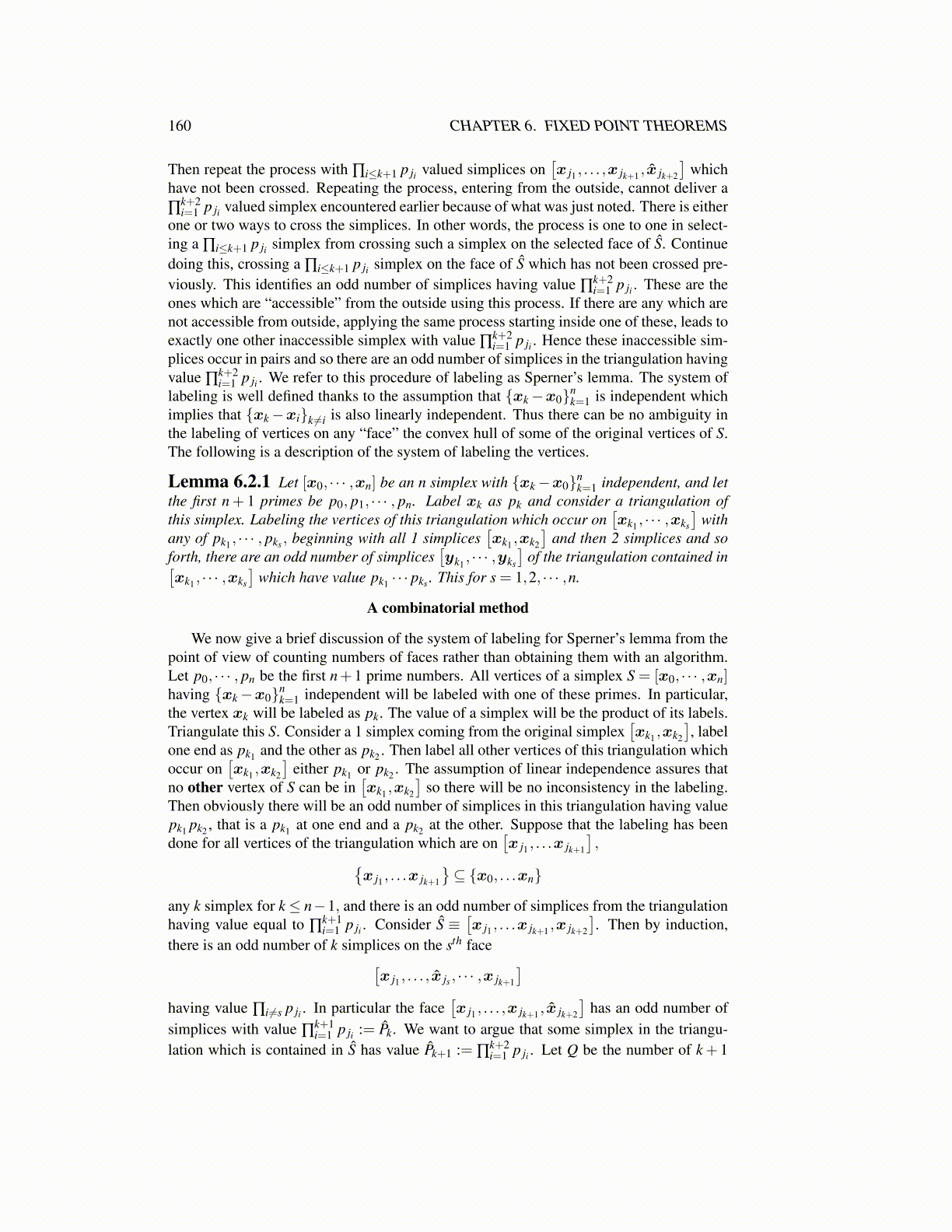 We now give a brief discussion of the system of labeling for Sperner’s lemma from thepoint of view of counting numbers of faces rather than obtaining them with an algorithm.Let p0, · · · , pn be the first n+1 prime numbers. All vertices of a simplex S = [x0, · · · ,xn]having {xk−x0}n