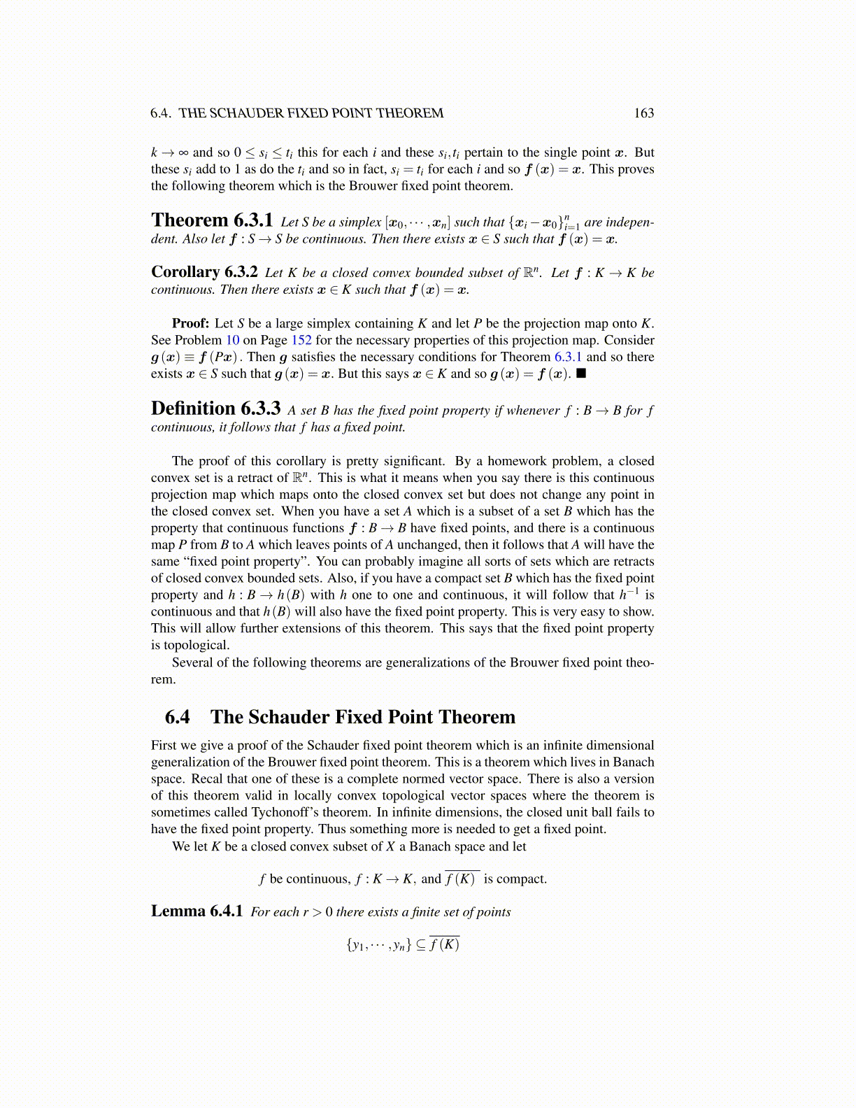 6.4. THE SCHAUDER FIXED POINT THEOREM 163