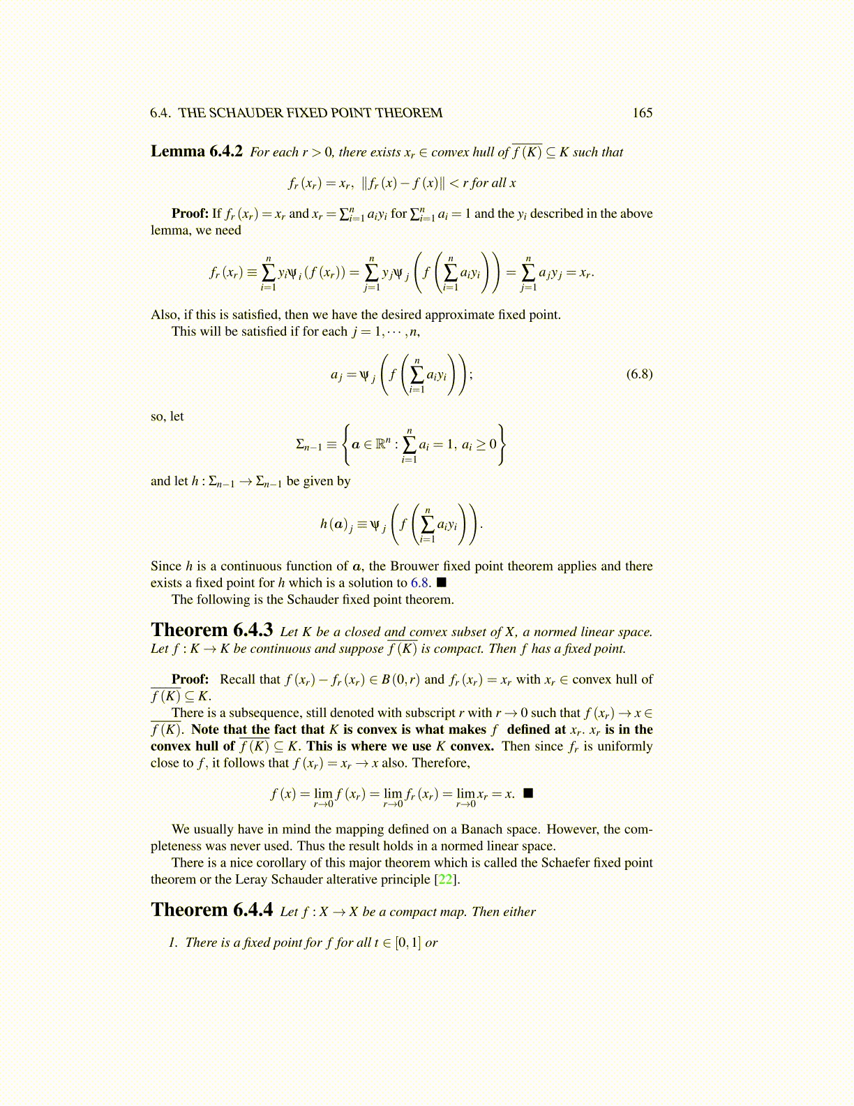 6.4. THE SCHAUDER FIXED POINT THEOREM 165