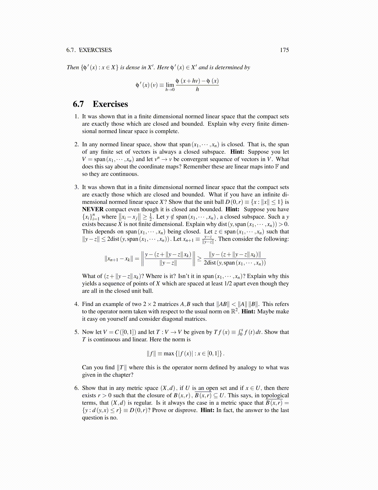 6.7 Exercises1. It was shown that in a finite dimensional normed linear space that the compact sets