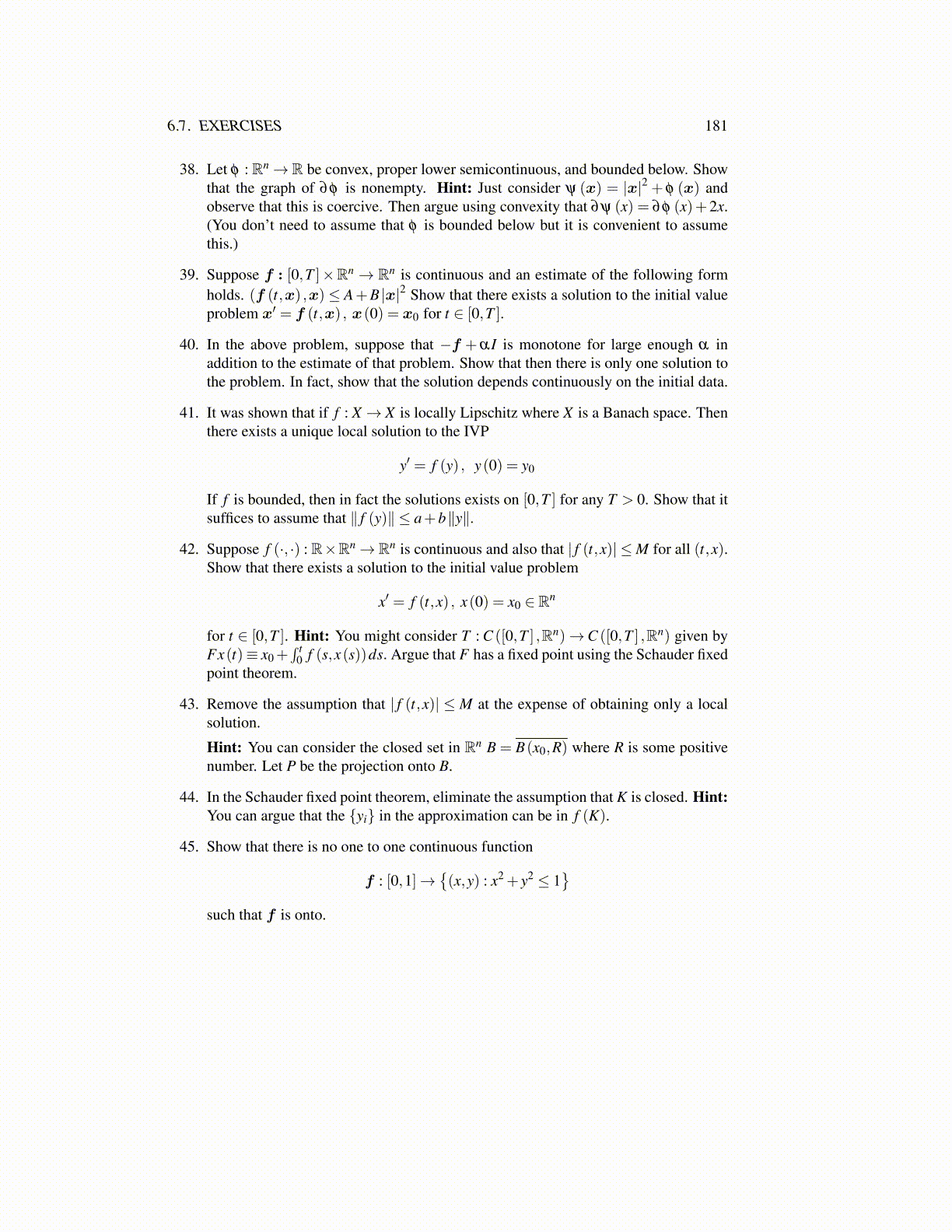 38. Let φ : Rn→ R be convex, proper lower semicontinuous, and bounded below. Showthat the graph of ∂φ is nonempty. Hint: Just consider ψ (x) = |x|2 + φ (x) andobserve that this is coercive. Then argue using convexity that ∂ψ (x) = ∂φ (x)+2x.(You don’t need to assume that φ is bounded below but it is convenient to assumethis.)