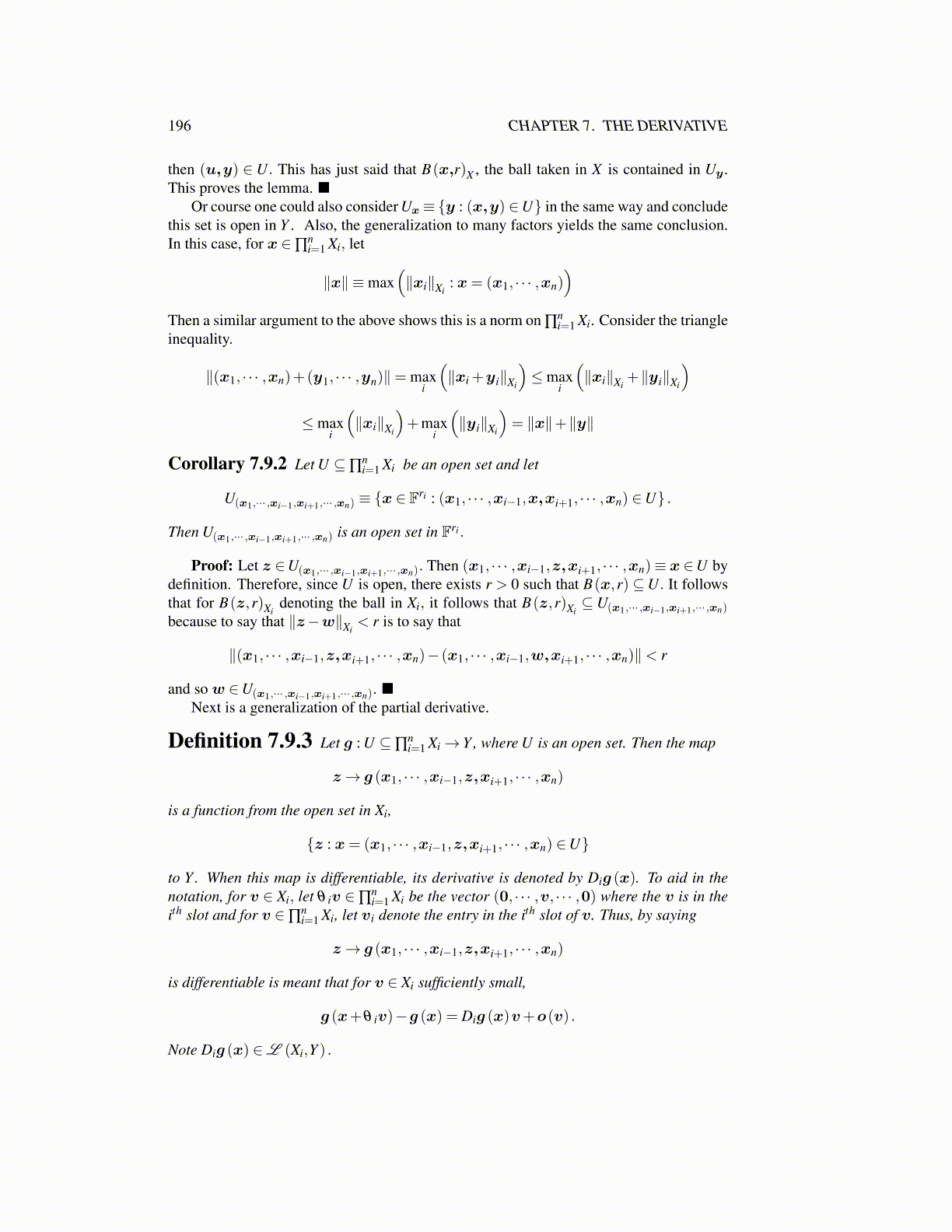 and so w ∈U(x1,··· ,xi−1,xi+1,··· ,xn). ■Next is a generalization of the partial derivative.
