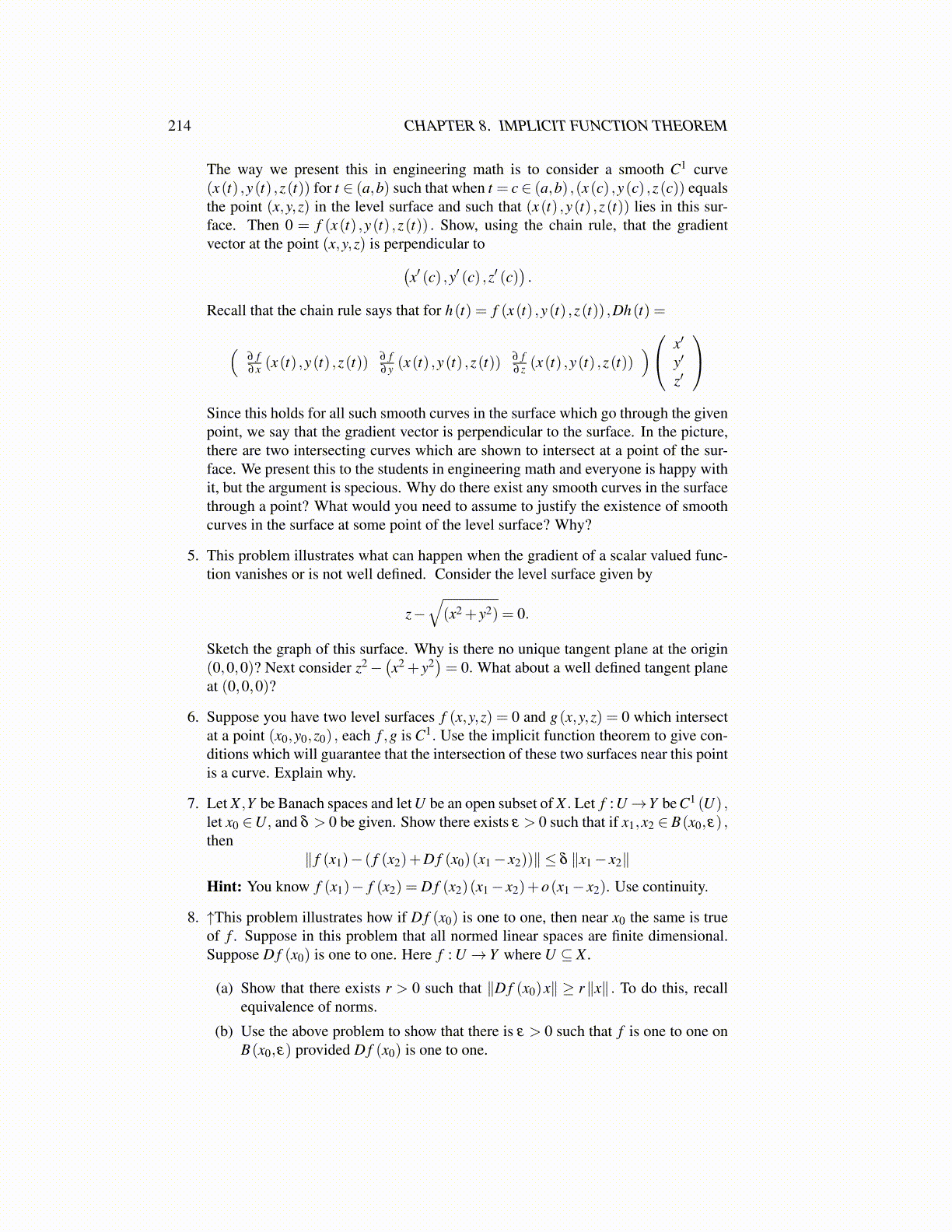 214 CHAPTER 8. IMPLICIT FUNCTION THEOREM
