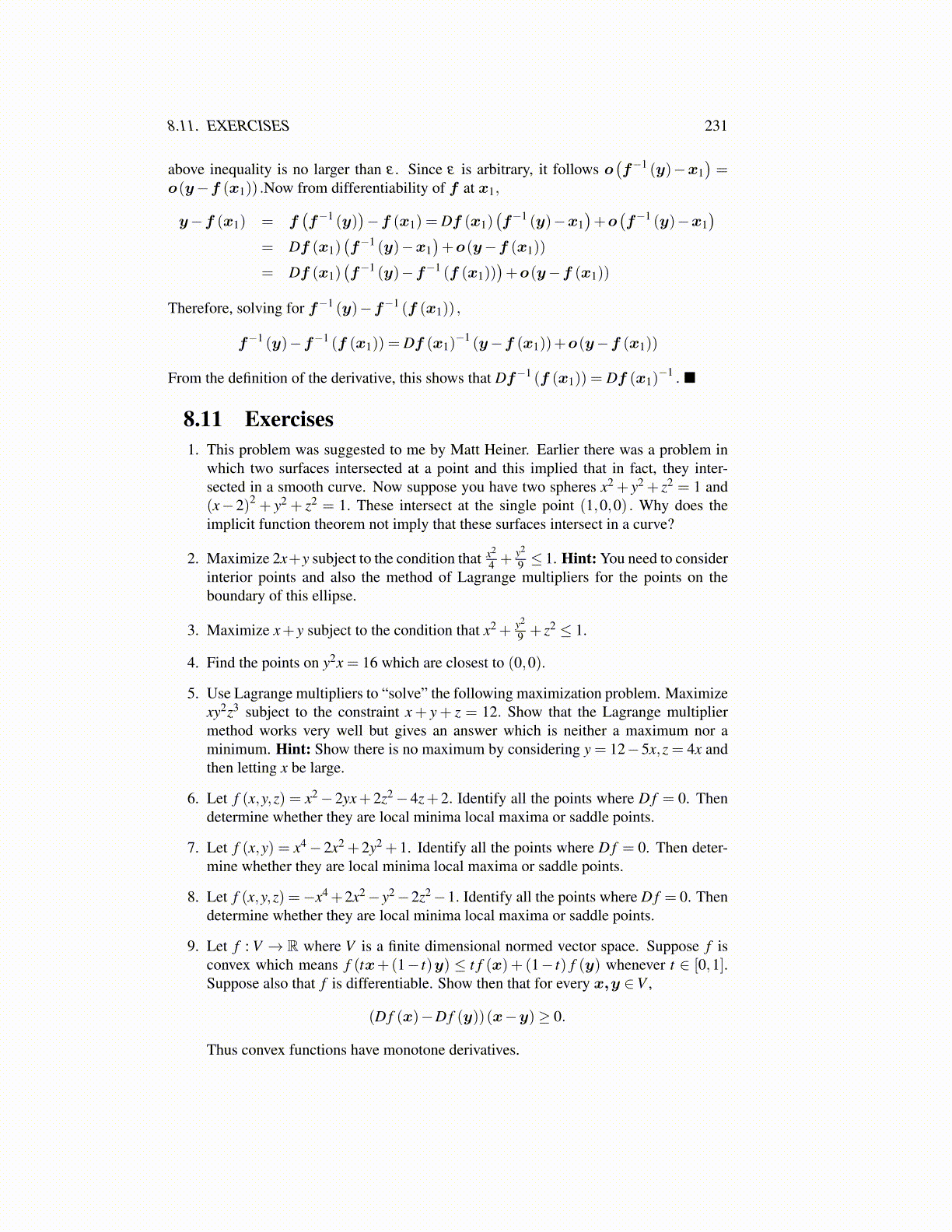 From the definition of the derivative, this shows that Df−1 (f (x1)) = Df (x1)−1 . ■