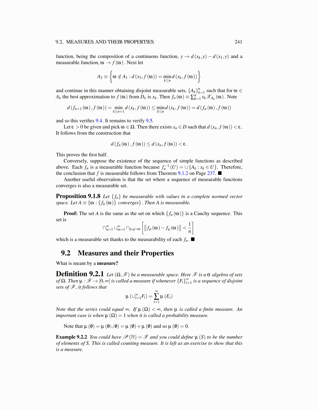 9.2. MEASURES AND THEIR PROPERTIES 241