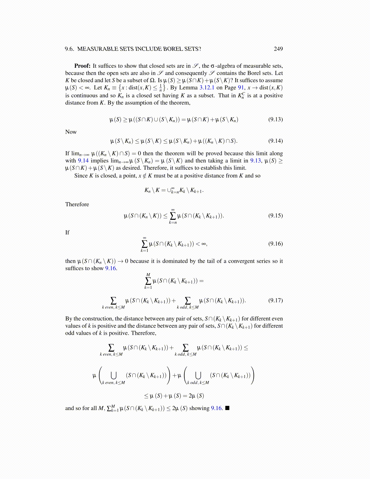 and so for all M, ∑Mk=1 µ(S∩ (Kk \Kk+1))≤ 2µ (S) showing 9.16. ■