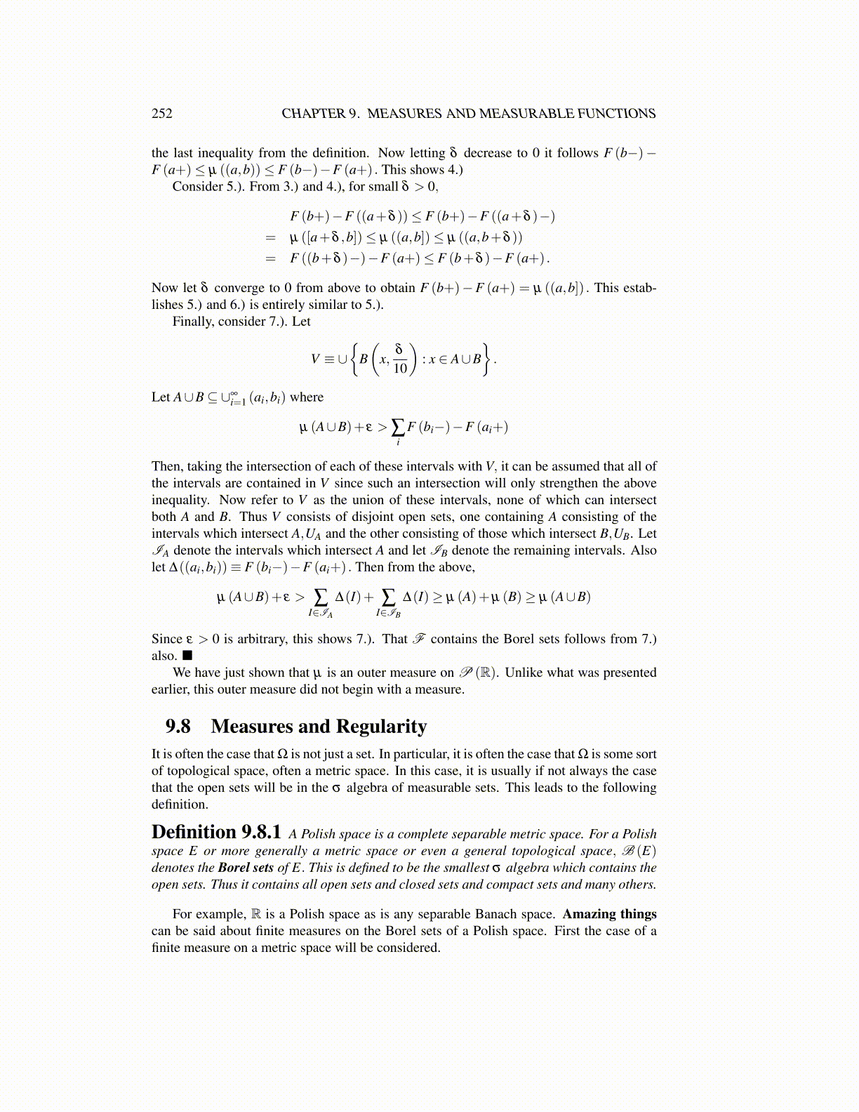 252 CHAPTER 9. MEASURES AND MEASURABLE FUNCTIONS