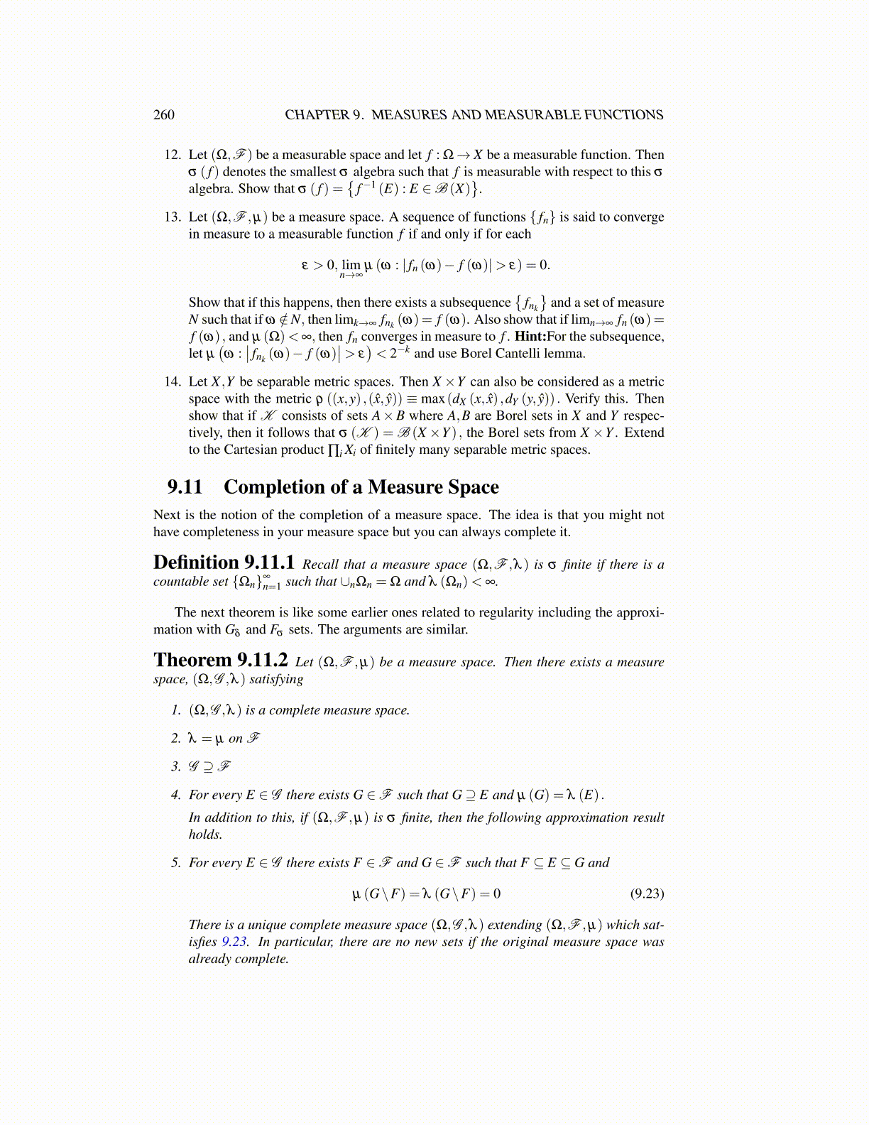 9.11 Completion of a Measure SpaceNext is the notion of the completion of a measure space. The idea is that you might nothave completeness in your measure space but you can always complete it.