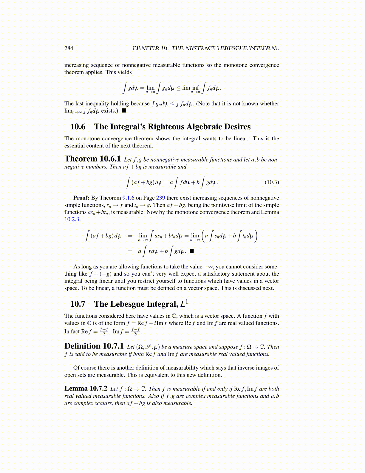 284 CHAPTER 10. THE ABSTRACT LEBESGUE INTEGRAL
