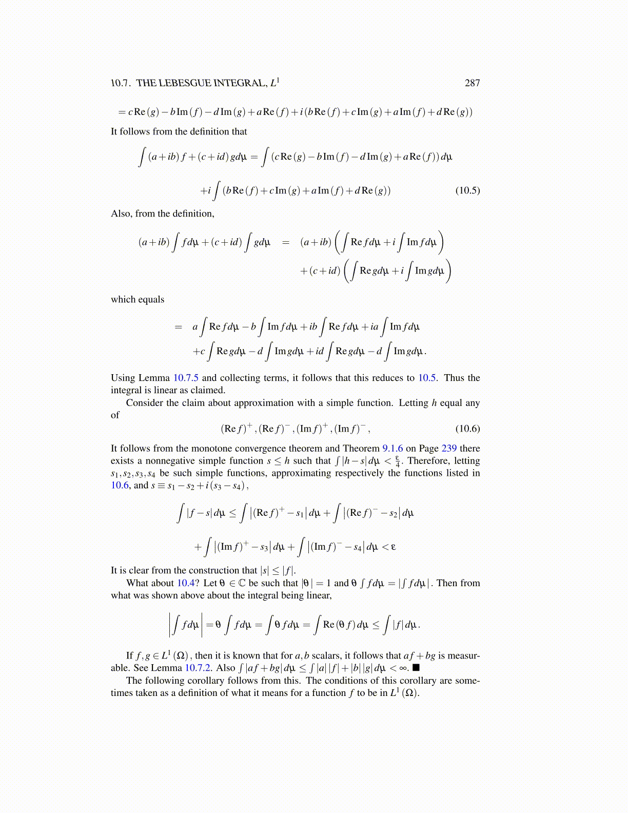 10.7. THE LEBESGUE INTEGRAL, L1 287