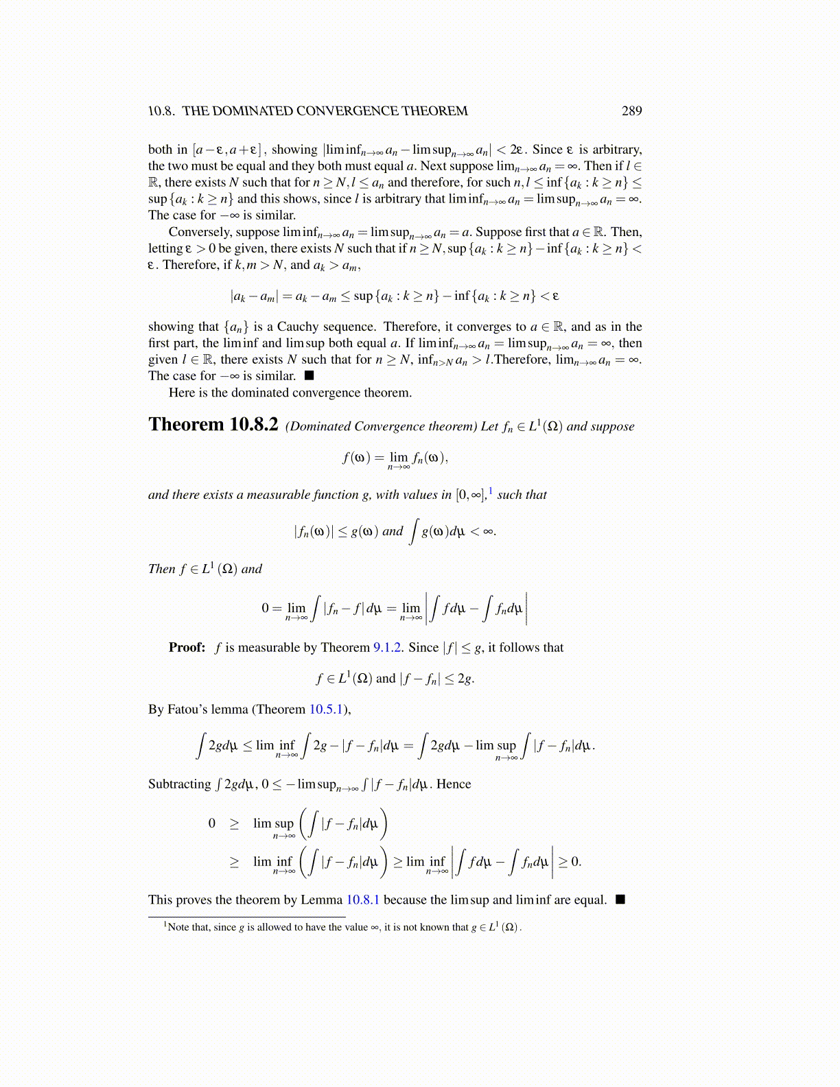 10.8. THE DOMINATED CONVERGENCE THEOREM 289