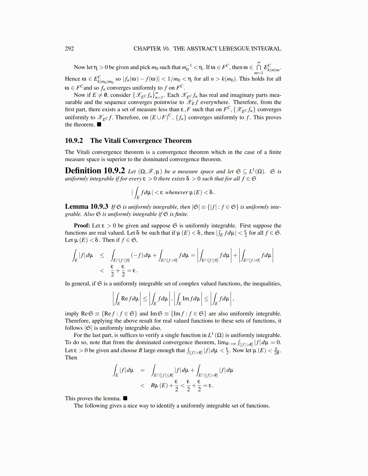 10.9.2 The Vitali Convergence TheoremThe Vitali convergence theorem is a convergence theorem which in the case of a finitemeasure space is superior to the dominated convergence theorem.