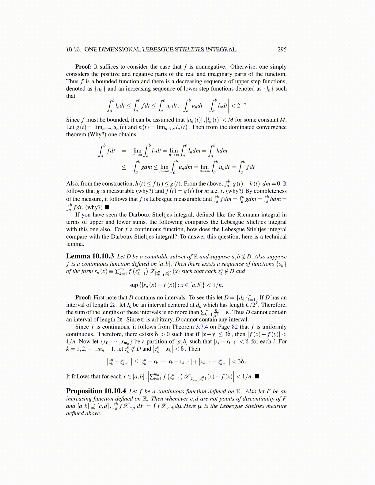 10.10. ONE DIMENSIONAL LEBESGUE STIELTJES INTEGRAL 295