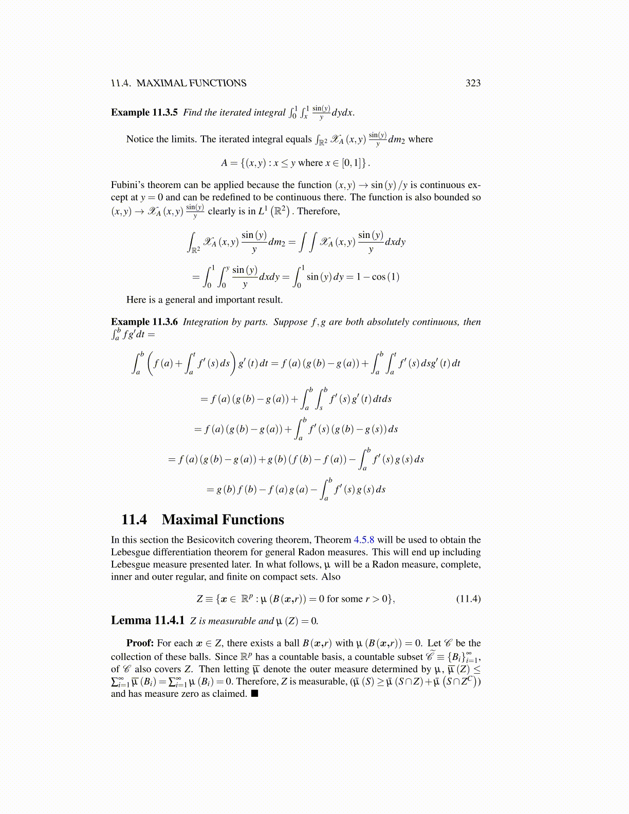 Lemma 11.4.1 Z is measurable and µ (Z) = 0.